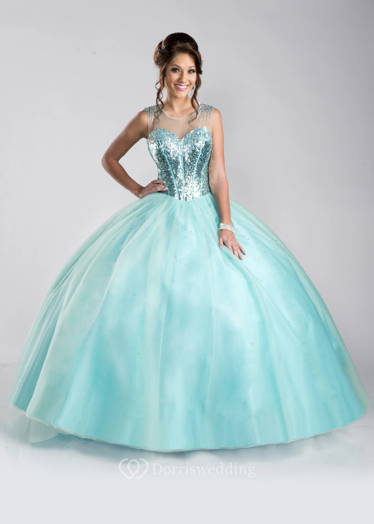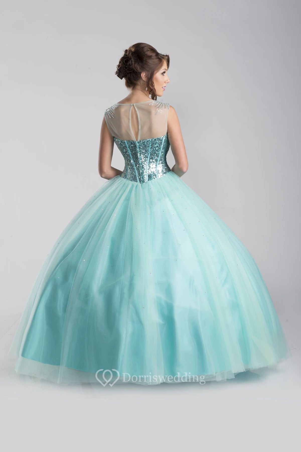 Tulle A-Line Sleeveless Ball Gown With Sequined Bodice And Keyhole Back
