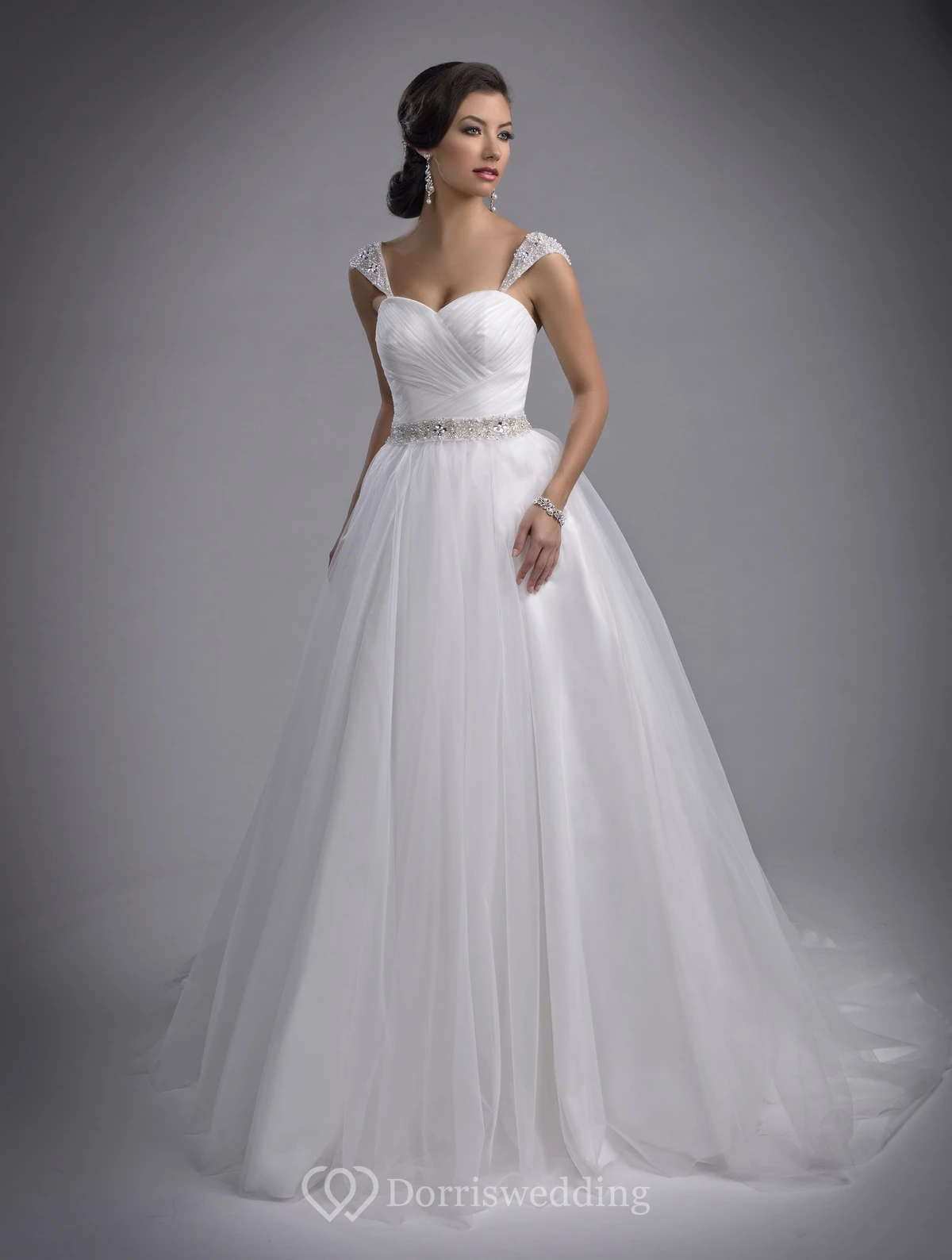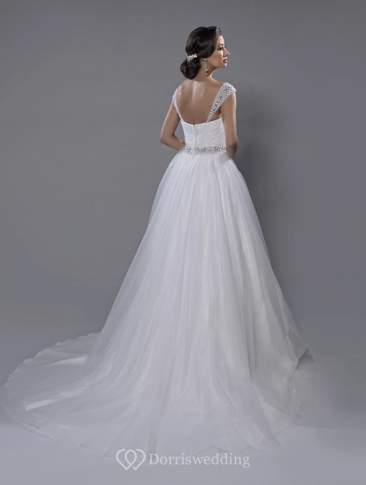 Tulle A-Line Wedding Dress With Ruched Crisscross Bodice And Beaded Shoulders