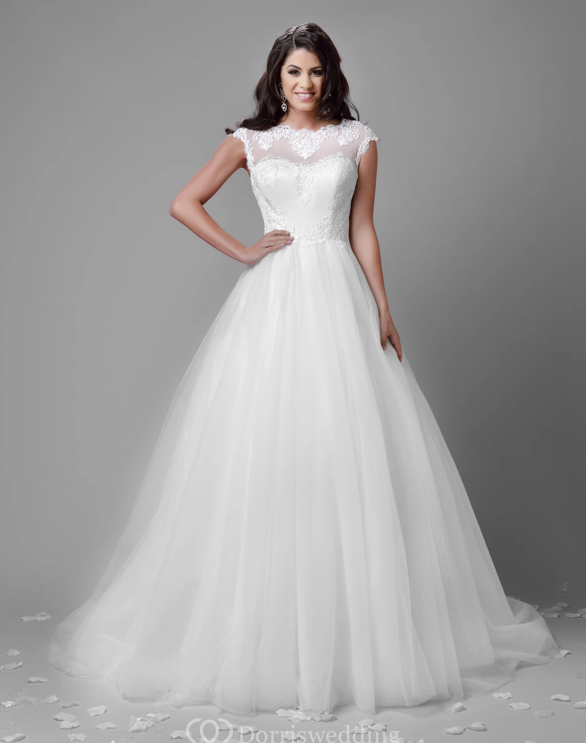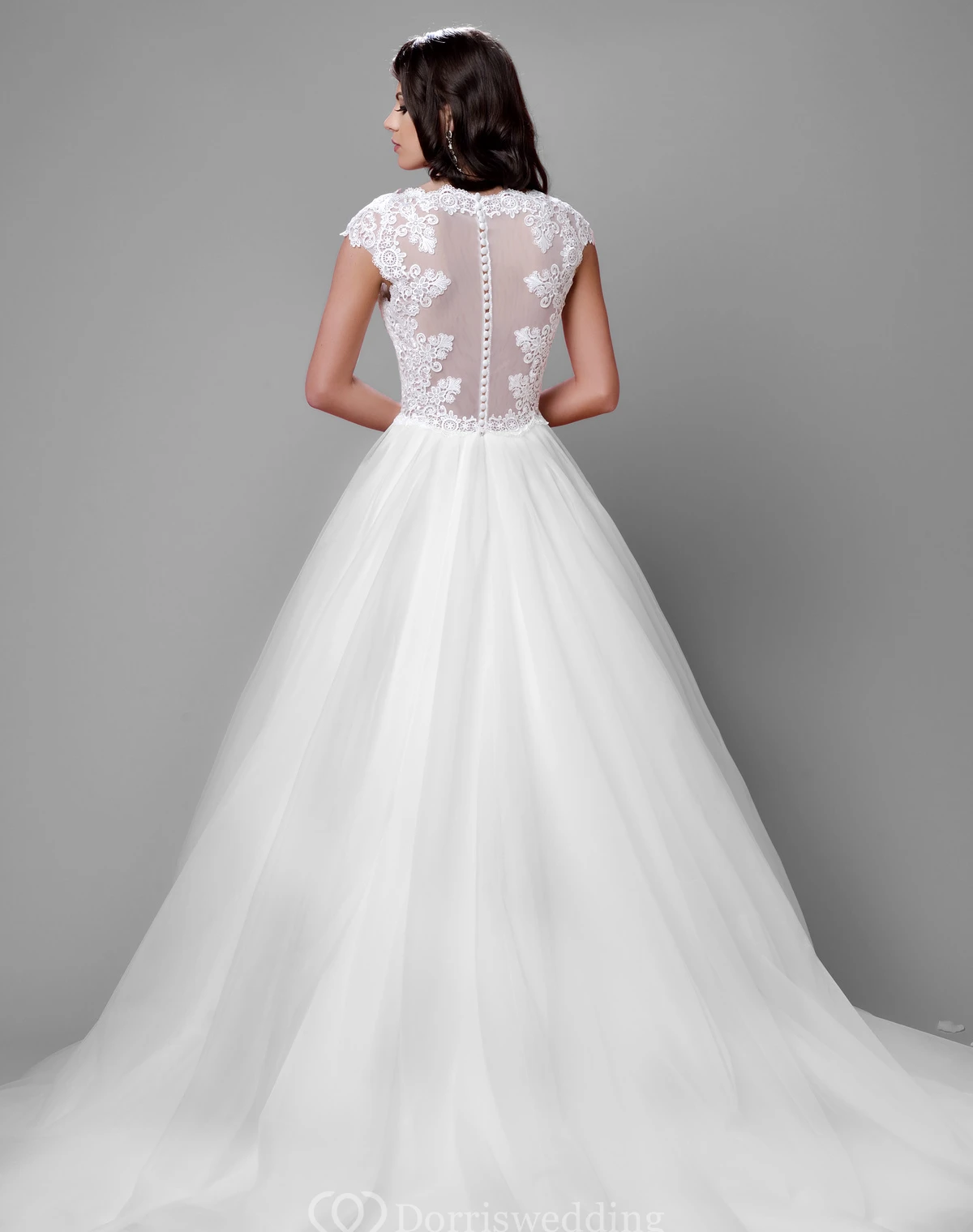 Tulle Cap Sleeve A-Line Wedding Dress With Illusion Back