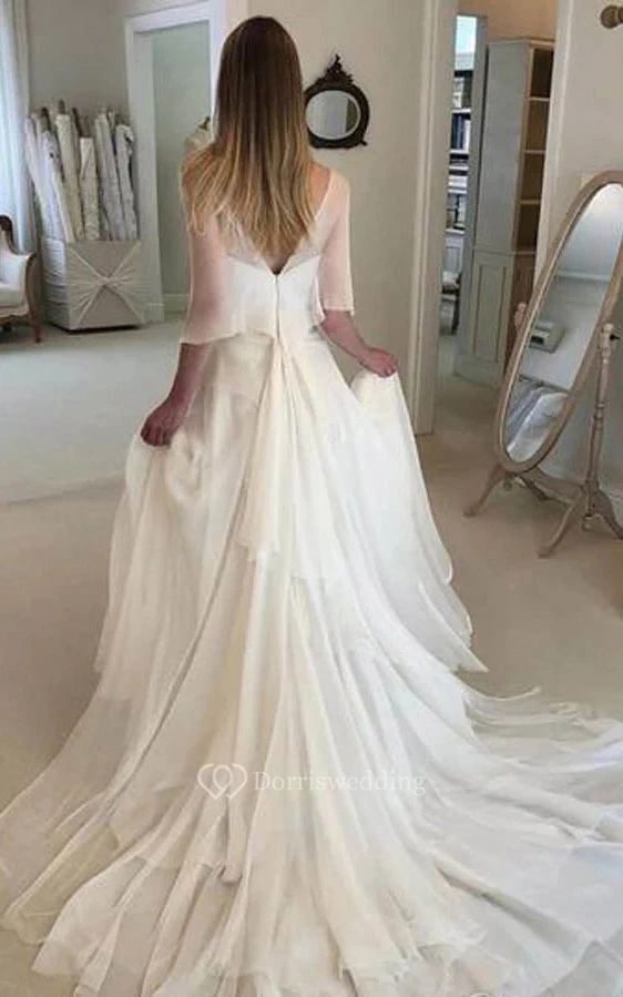 Tulle Criss-cross Ruched Chiffon Summer Casual Wedding Dress
