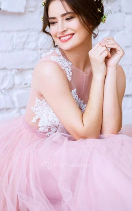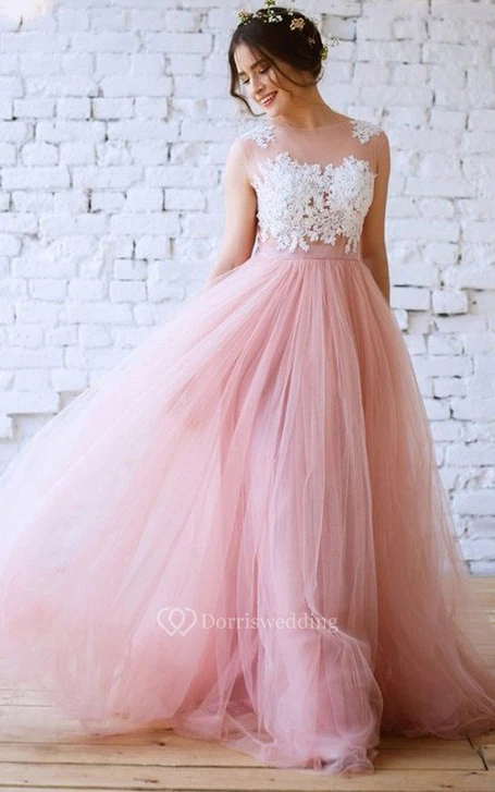 Tulle Floor-length A Line Sleeveless Casual Evening Dress with Lace and Pleats