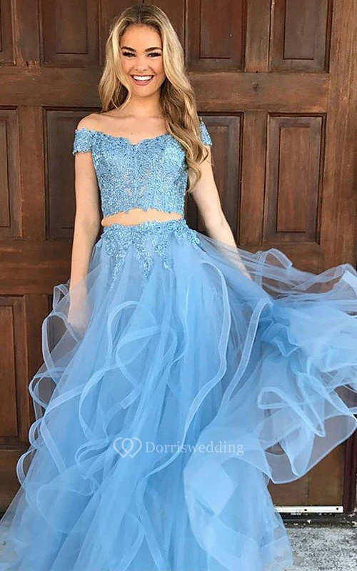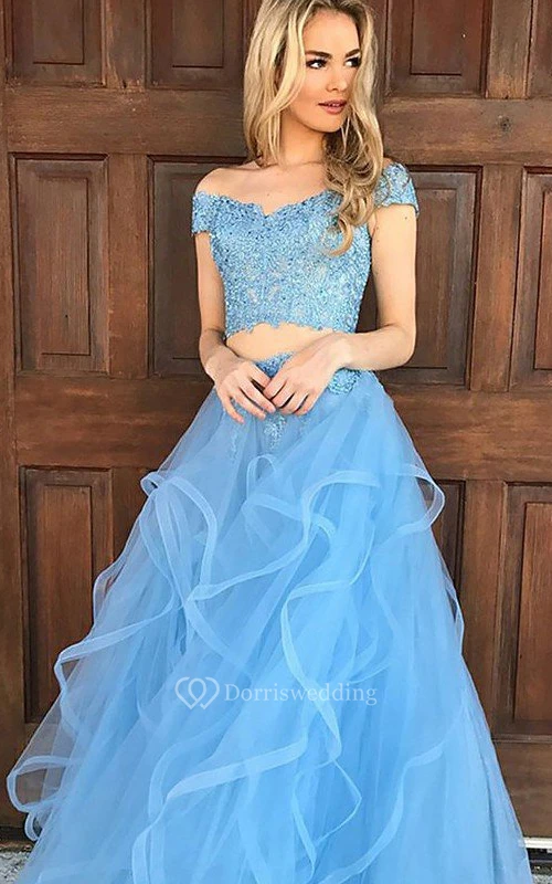 Tulle Floor-length Two Piece Sleeveless Adorable Evening Dress with Appliques