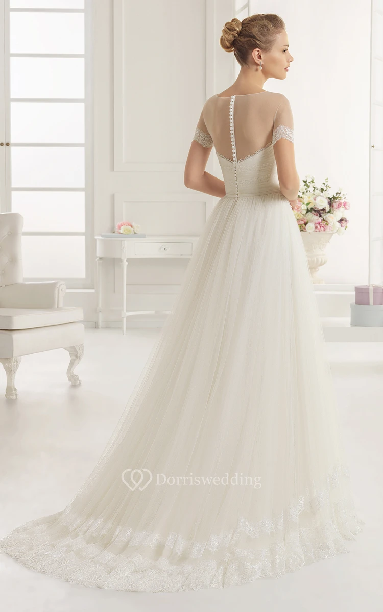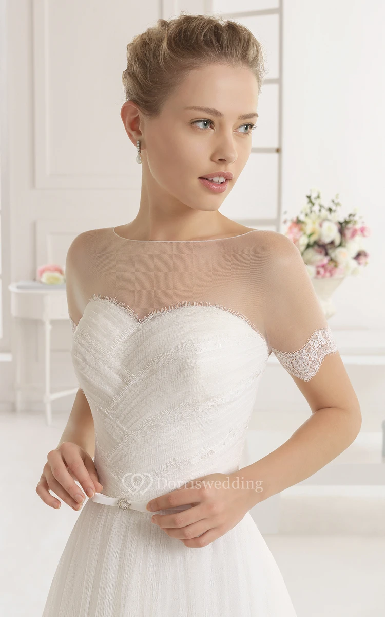 Tulle Gorgeous Criss-Cross Gown With Illusion Back And Neck