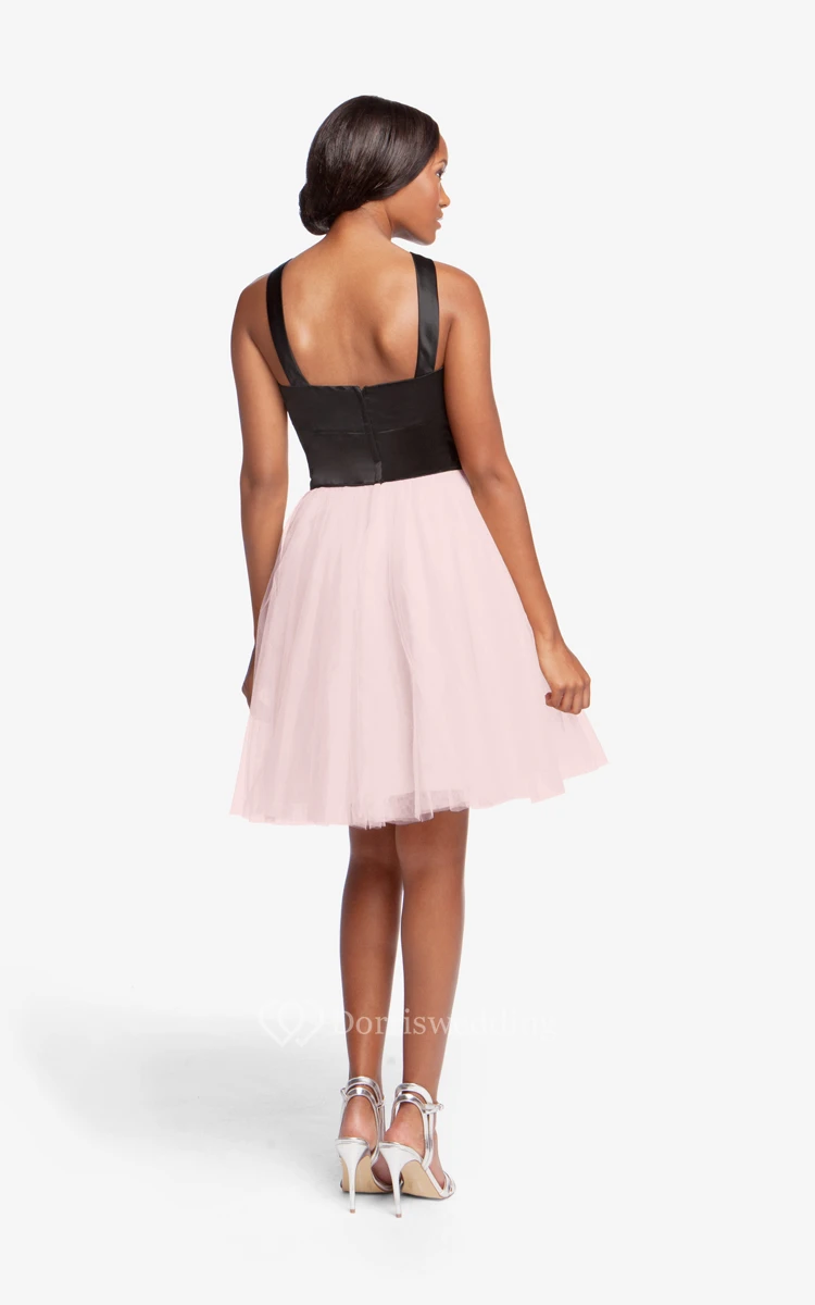 Tulle Lovely Short Dress With Fitted Satin Bodice