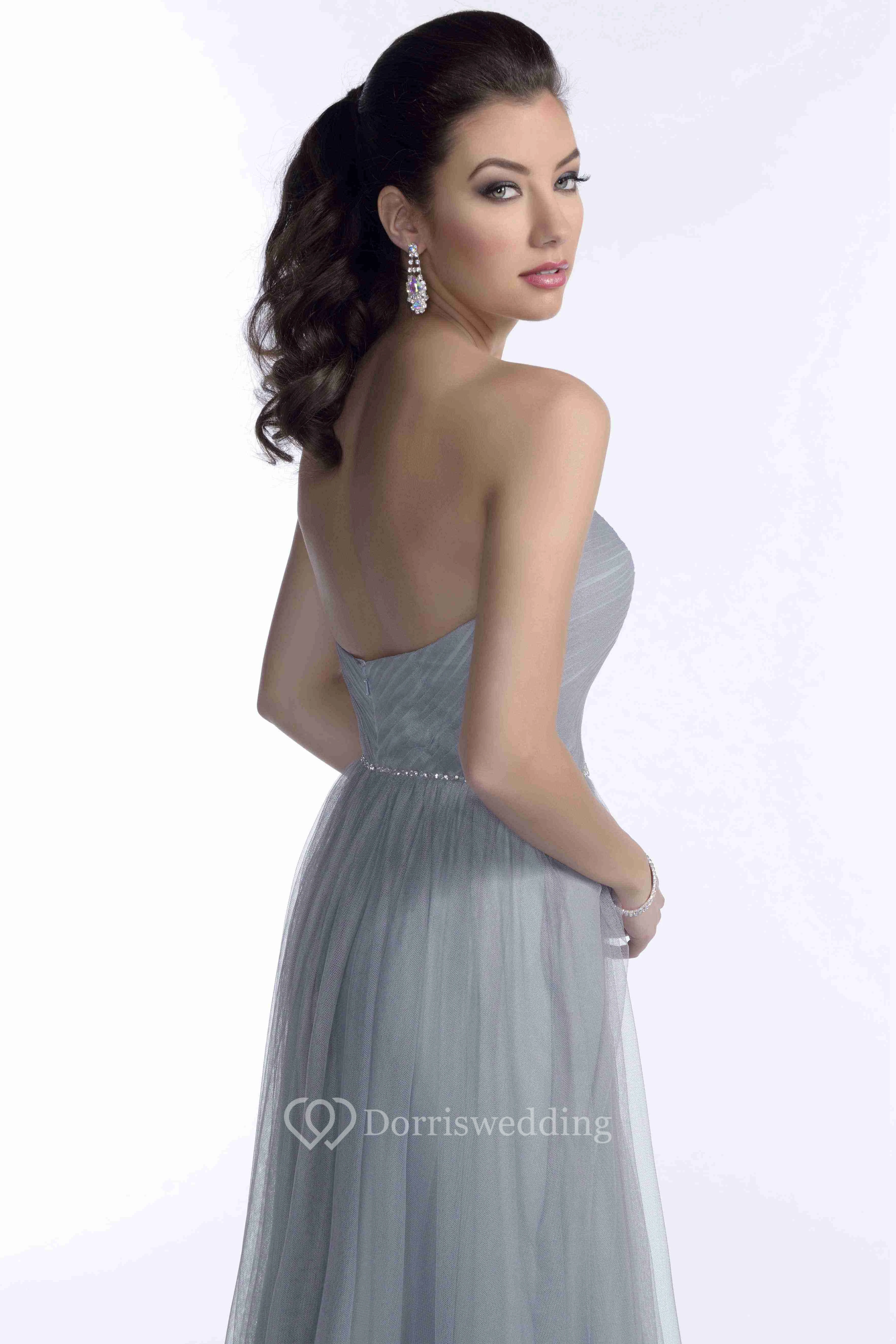Tulle Sweetheart A-Line Pleated Bridesmaid Dress With Slim Beaded Waistline
