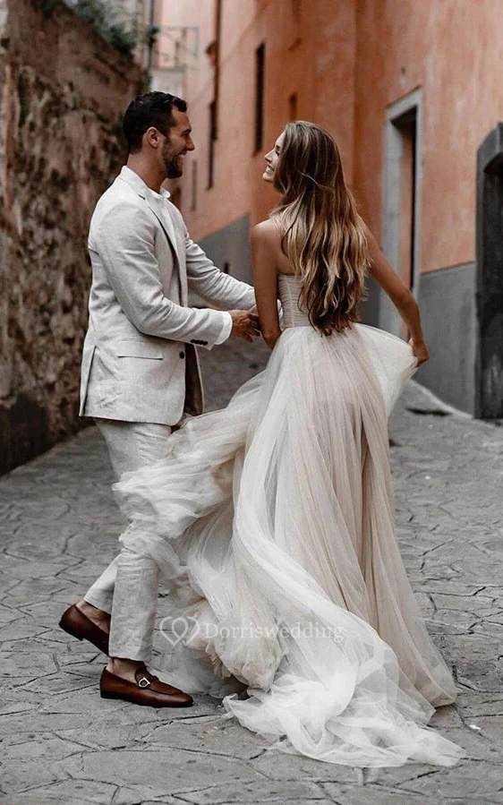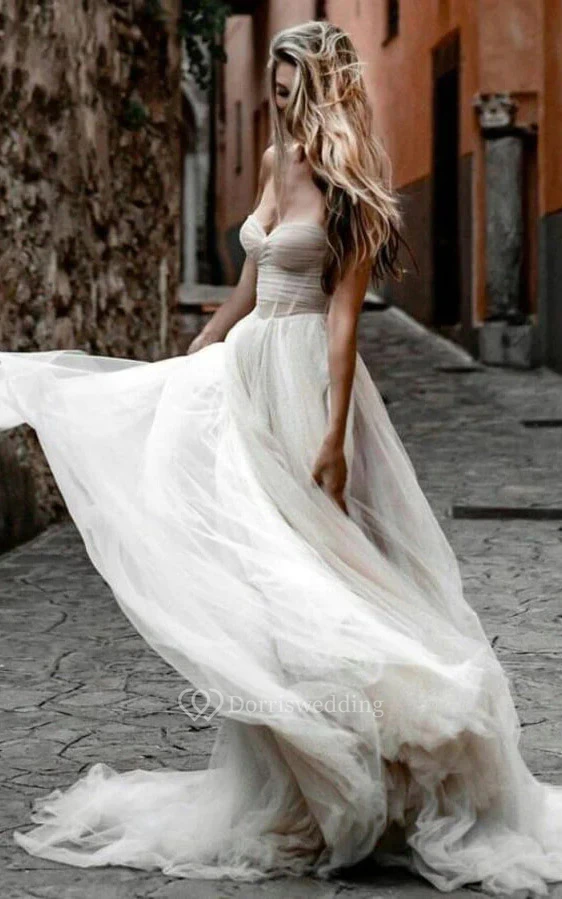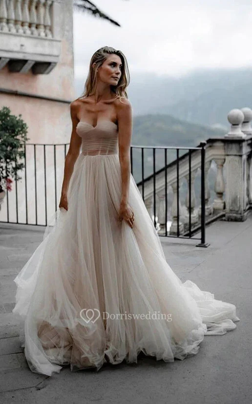 Tulle Sweetheart Ruched A-line Pleated Flowy Ethereal Wedding Dress