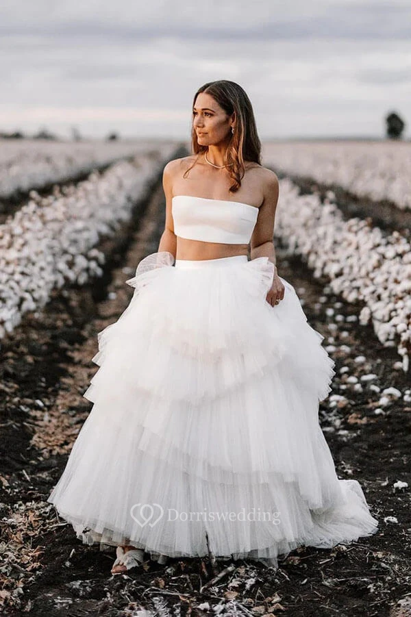 Tulle Two-Tone Empire A-line Layered A-line Wedding Dress