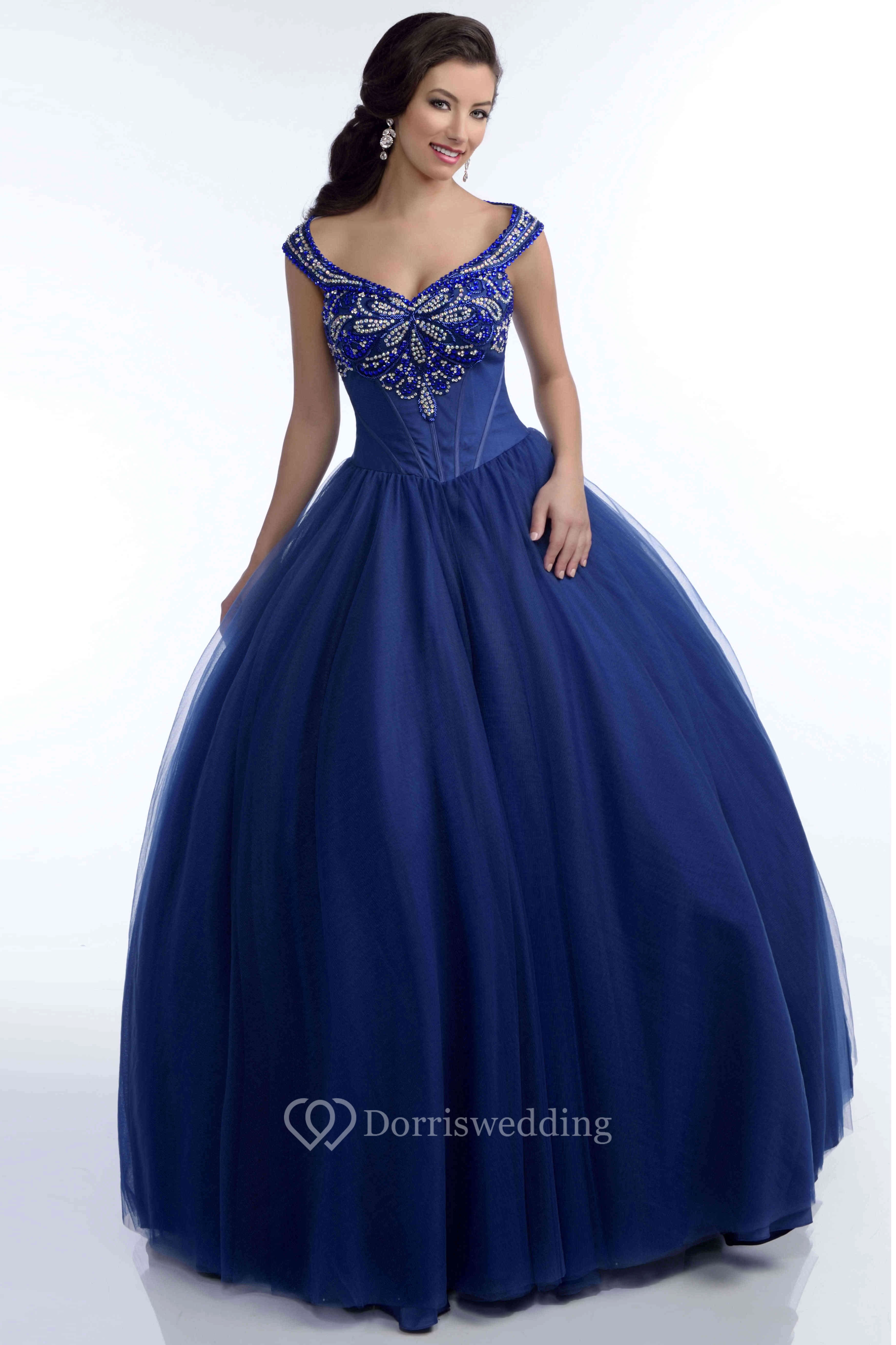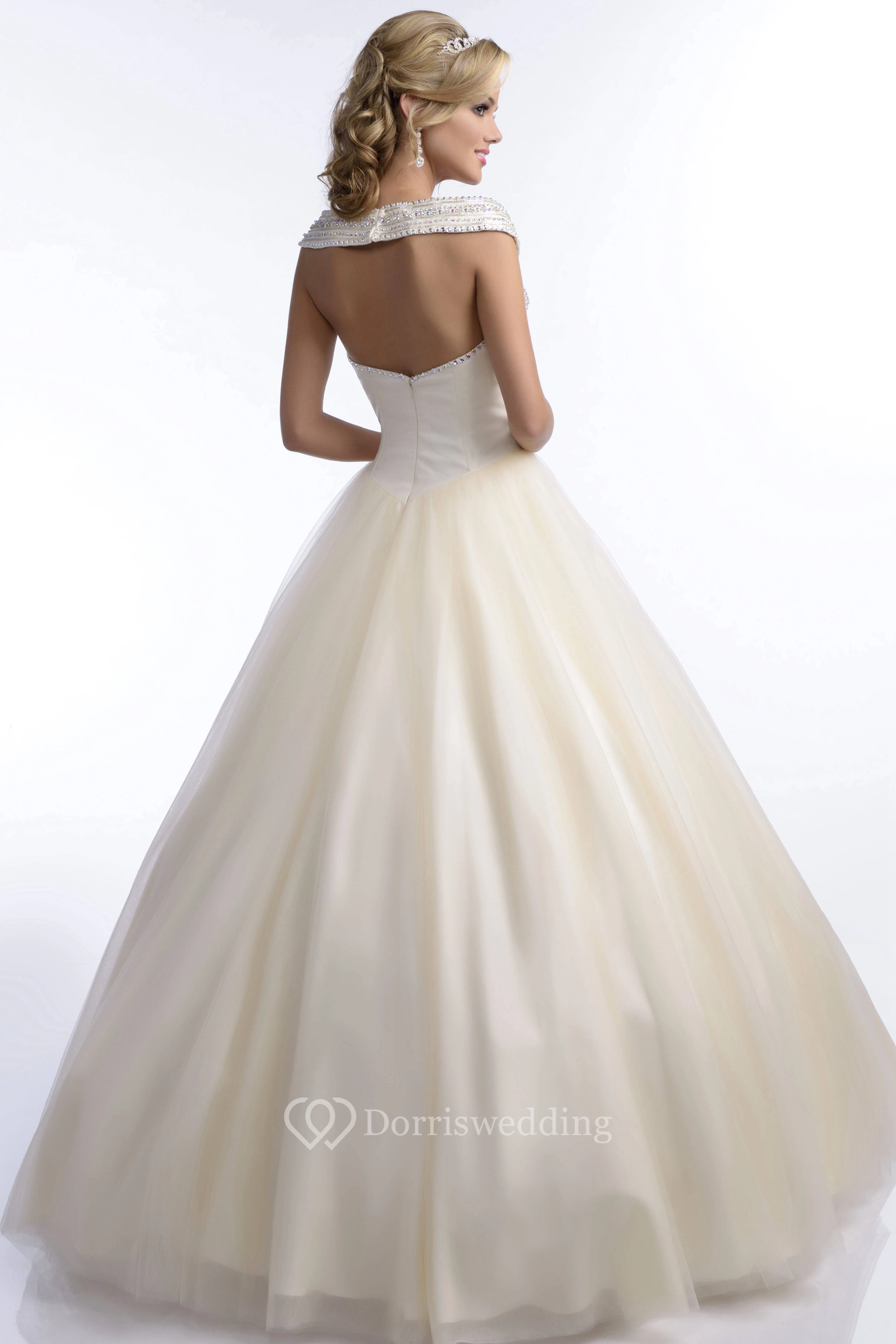 Tulle V-Neck Ball Gown With Crystal Detailed Top