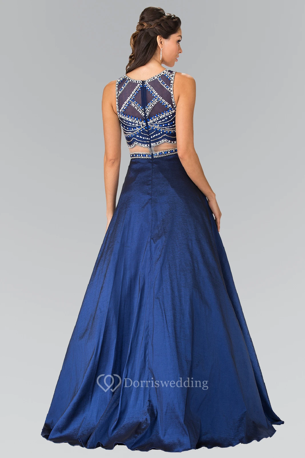 Two-Piece A-Line Scoop-Neck Sleeveless Satin Illusion Dress With Beading