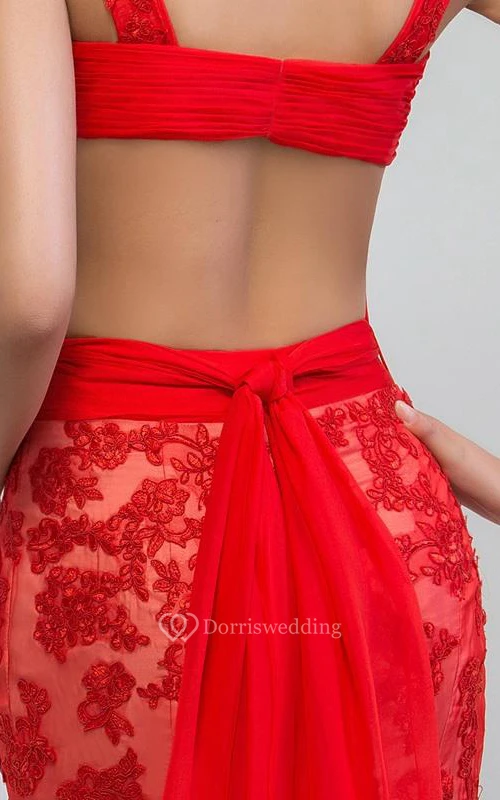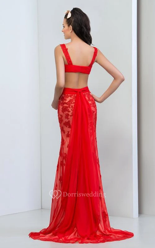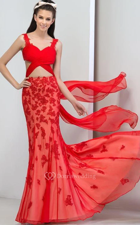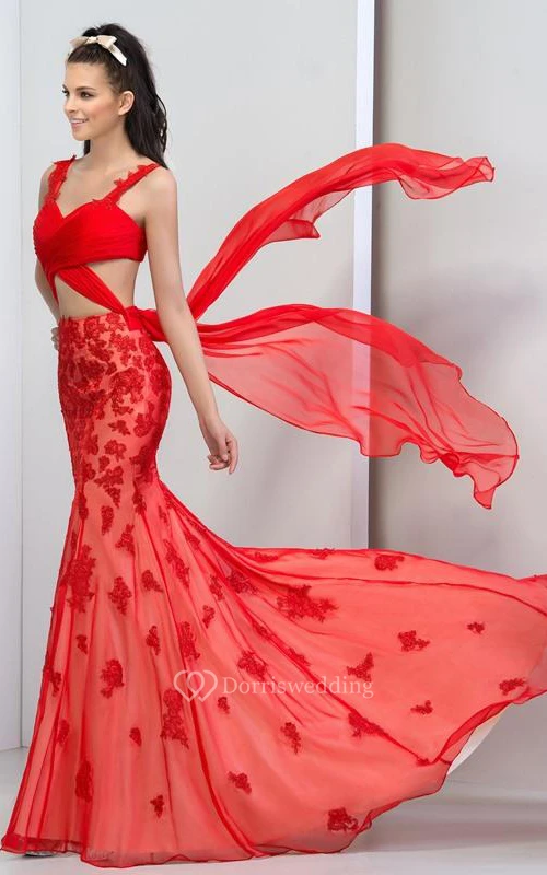 Two Piece Appliques Criss-Cross Straps Front Prom Dress