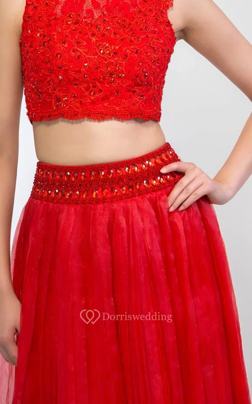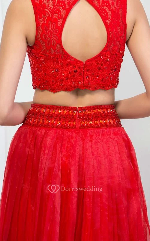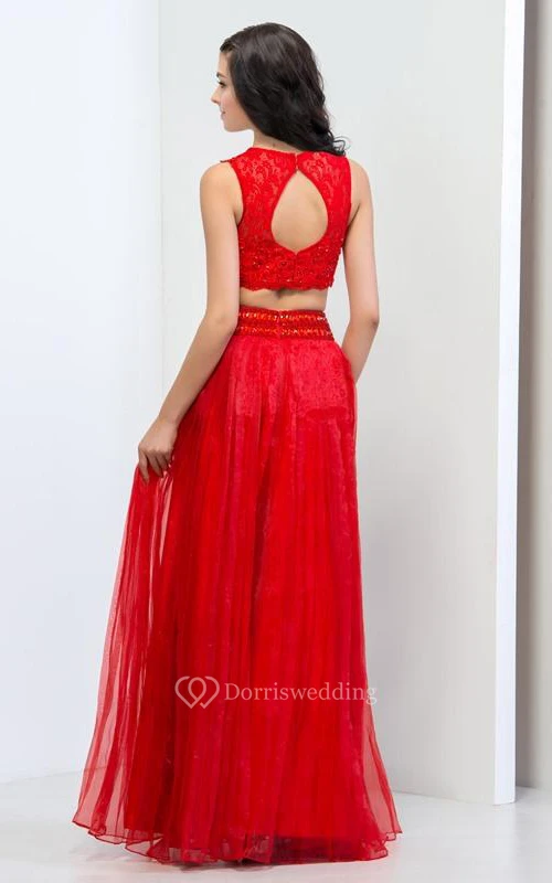 Two Piece Beading Hollow Lace Prom Dress