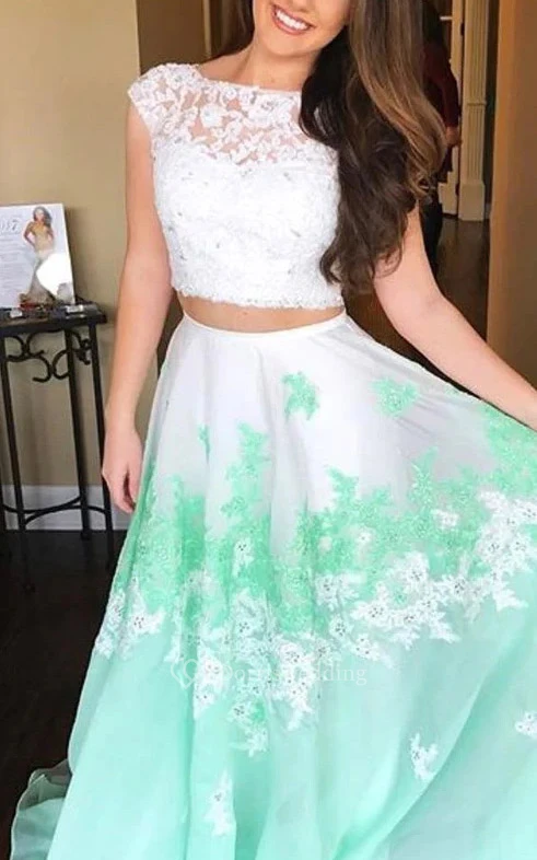 Two Piece Cap Lace Two-Tone Lace Applique Keyhole Beach Wedding Dress
