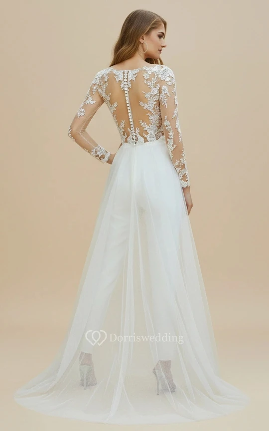 Two Piece Lace Bodice Satin Wide Leg Wedding Jumpsuit