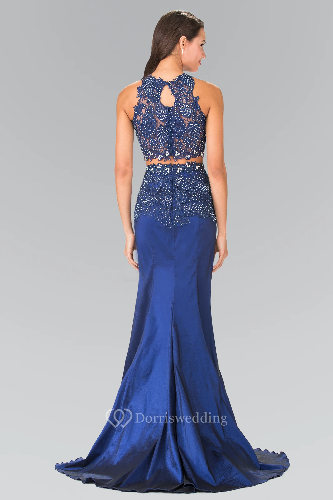 Two-Piece Mermaid High Neck Sleeveless Satin Illusion Dress With Appliques And Beading