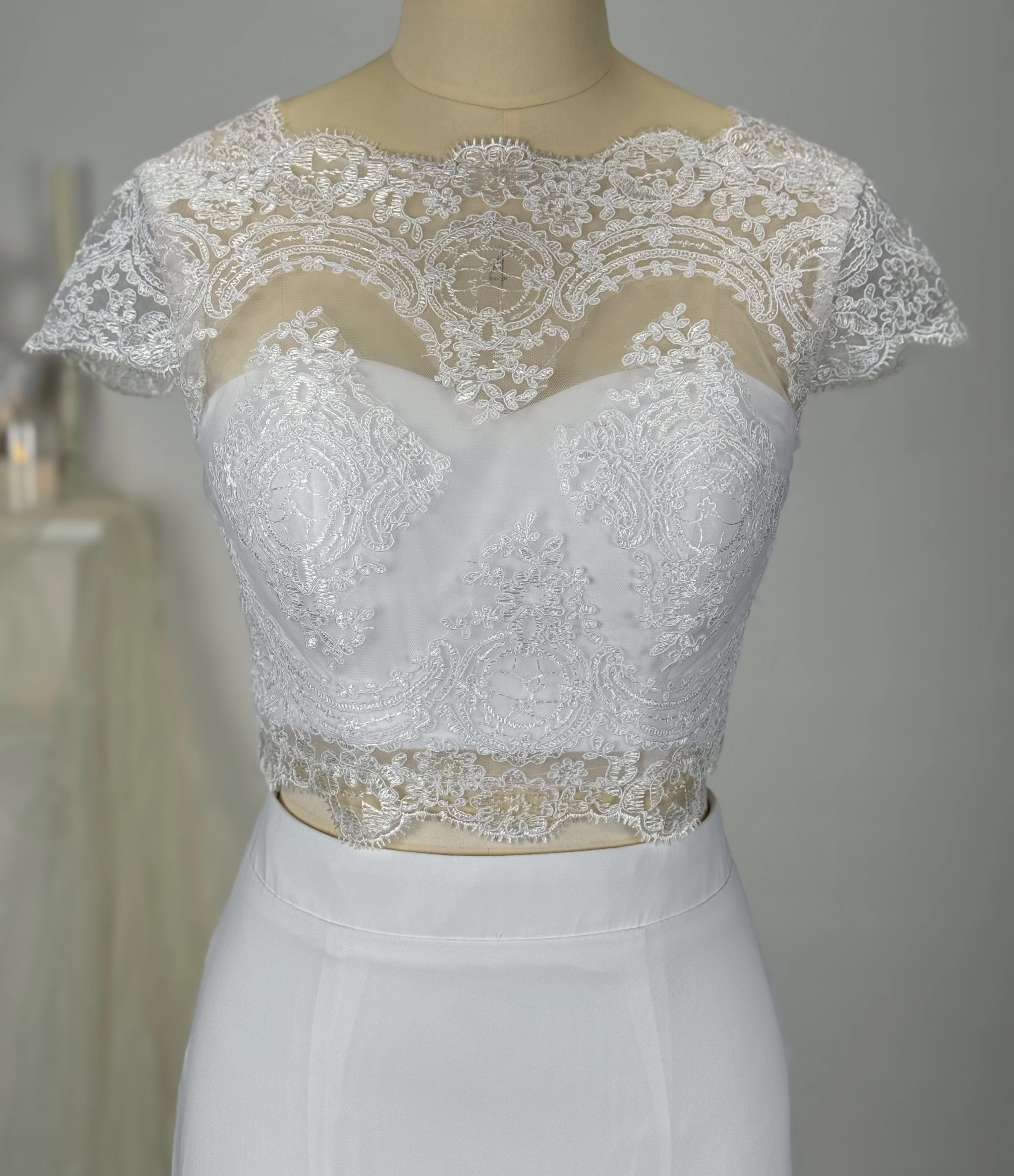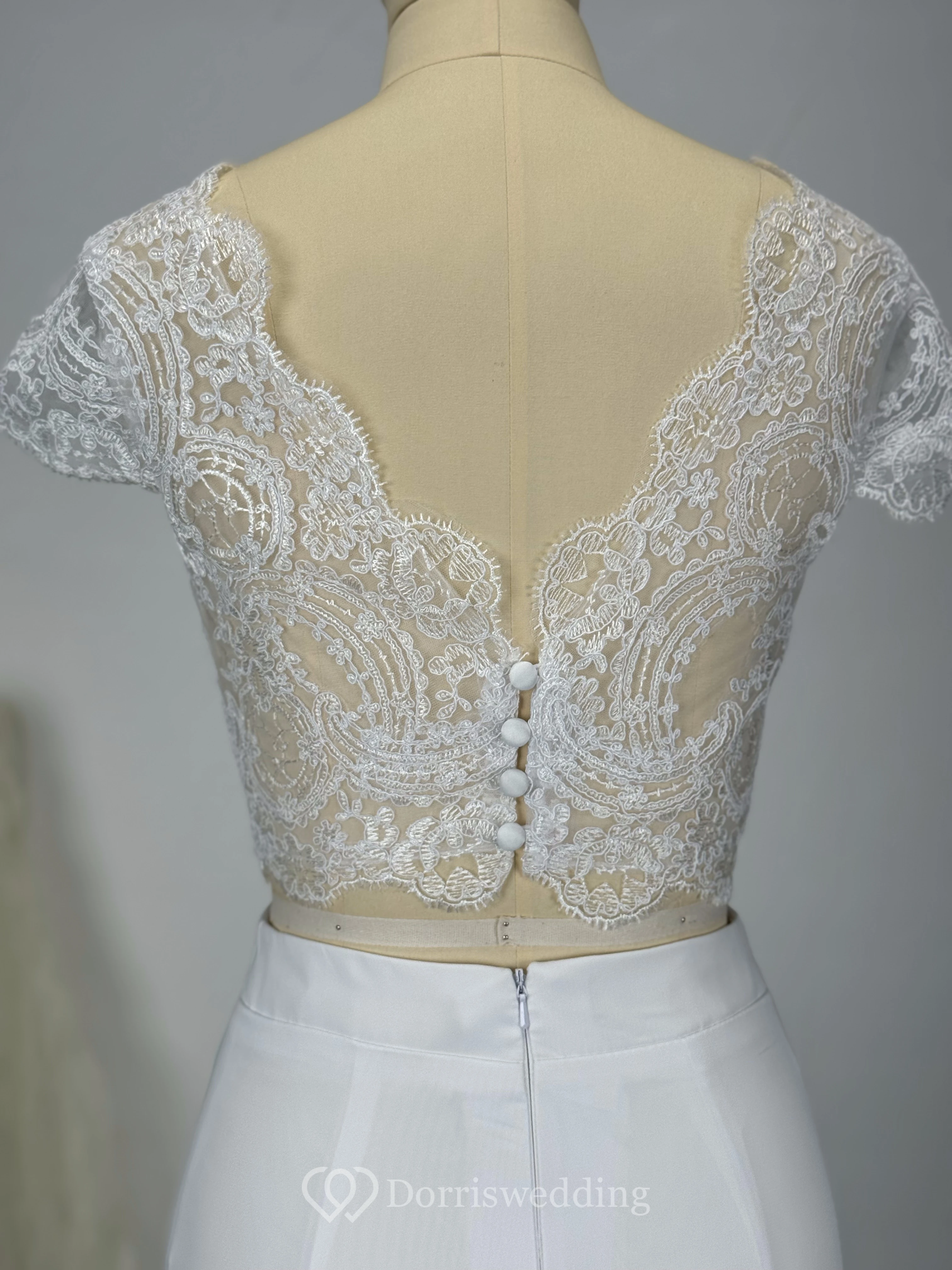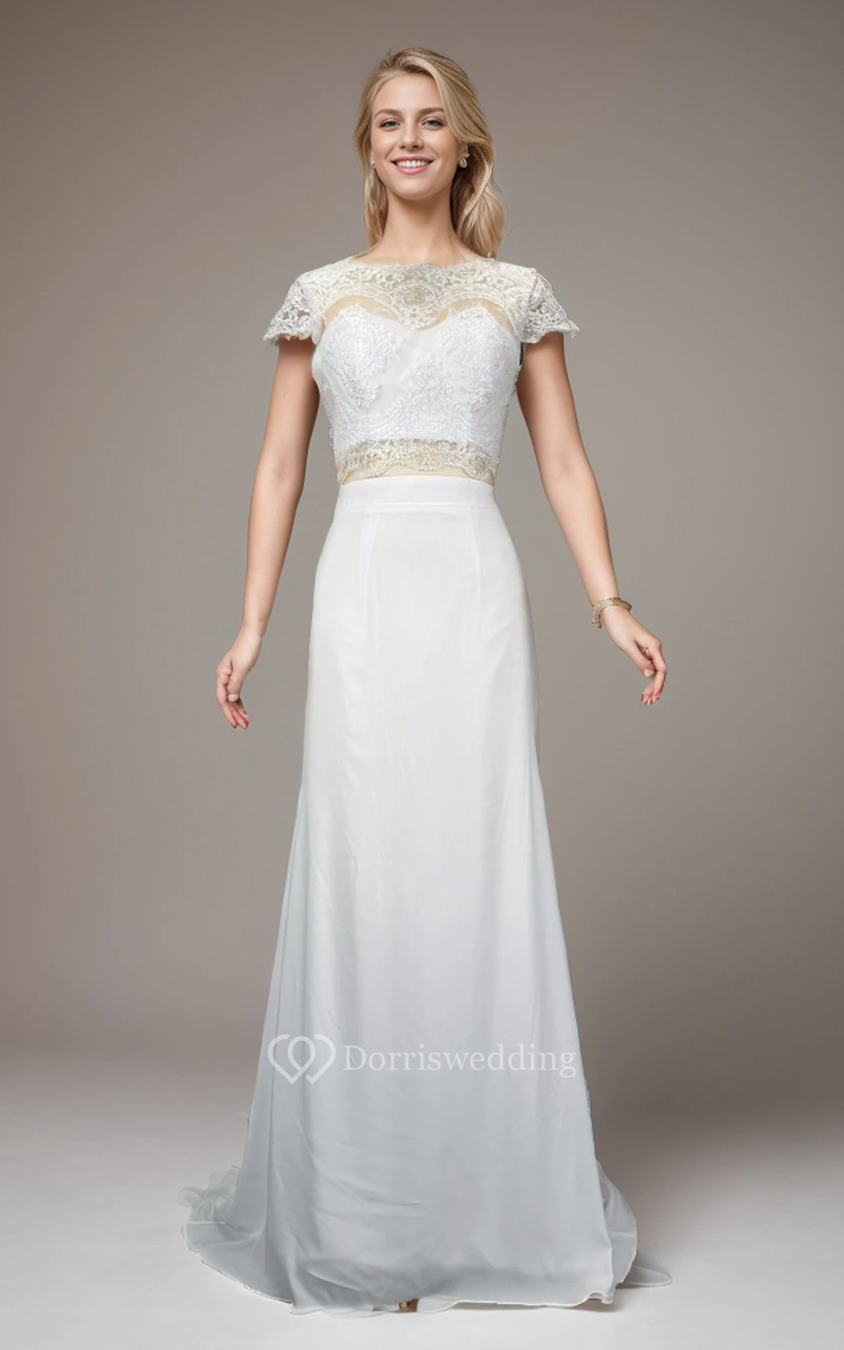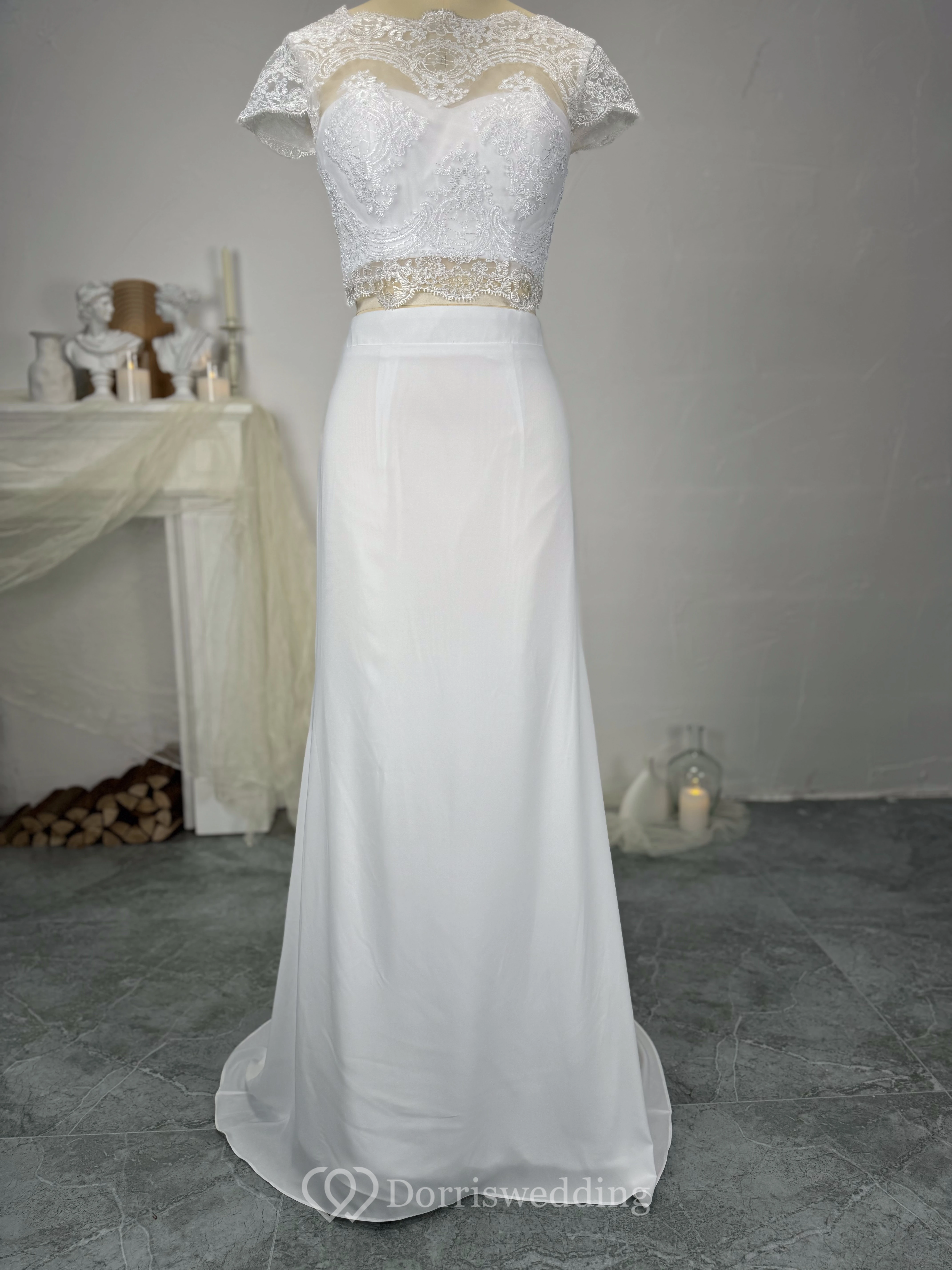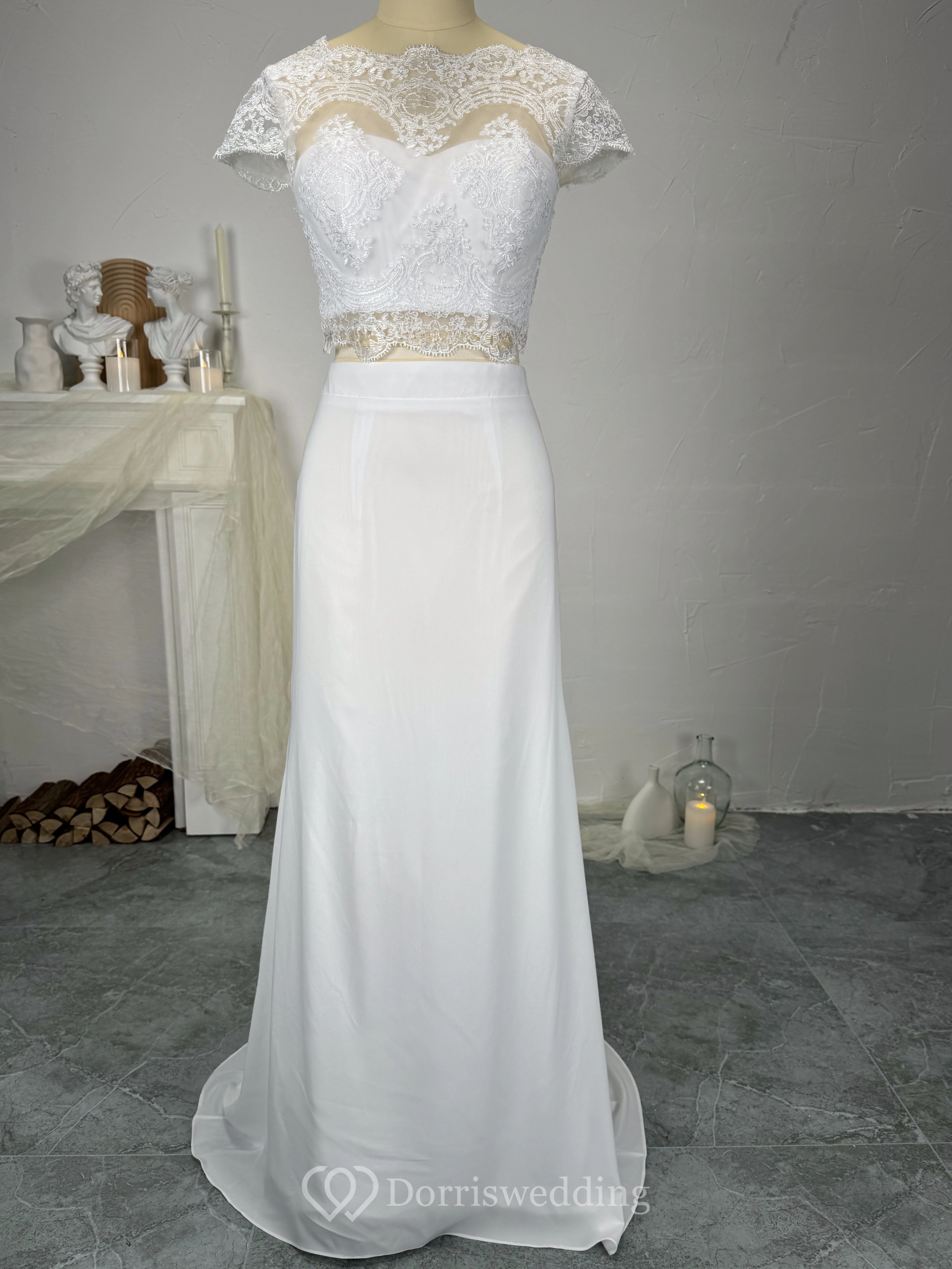 Two Piece Scalloped Chiffon Lace Floor-length Sheath Wedding Dress