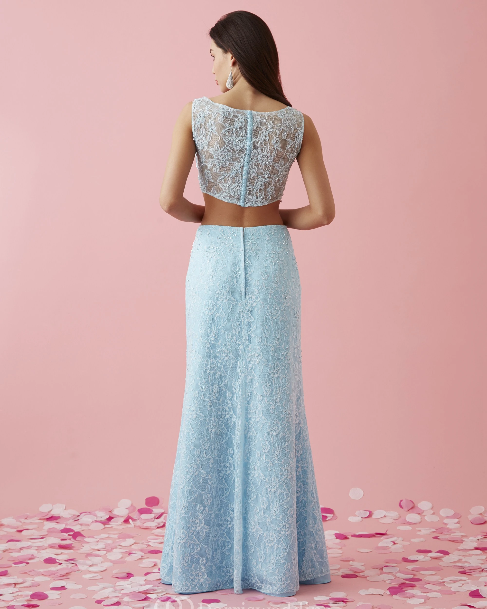 Two-Piece Sheath Floor-Length Scoop-Neck Sleeveless Lace Illusion Dress