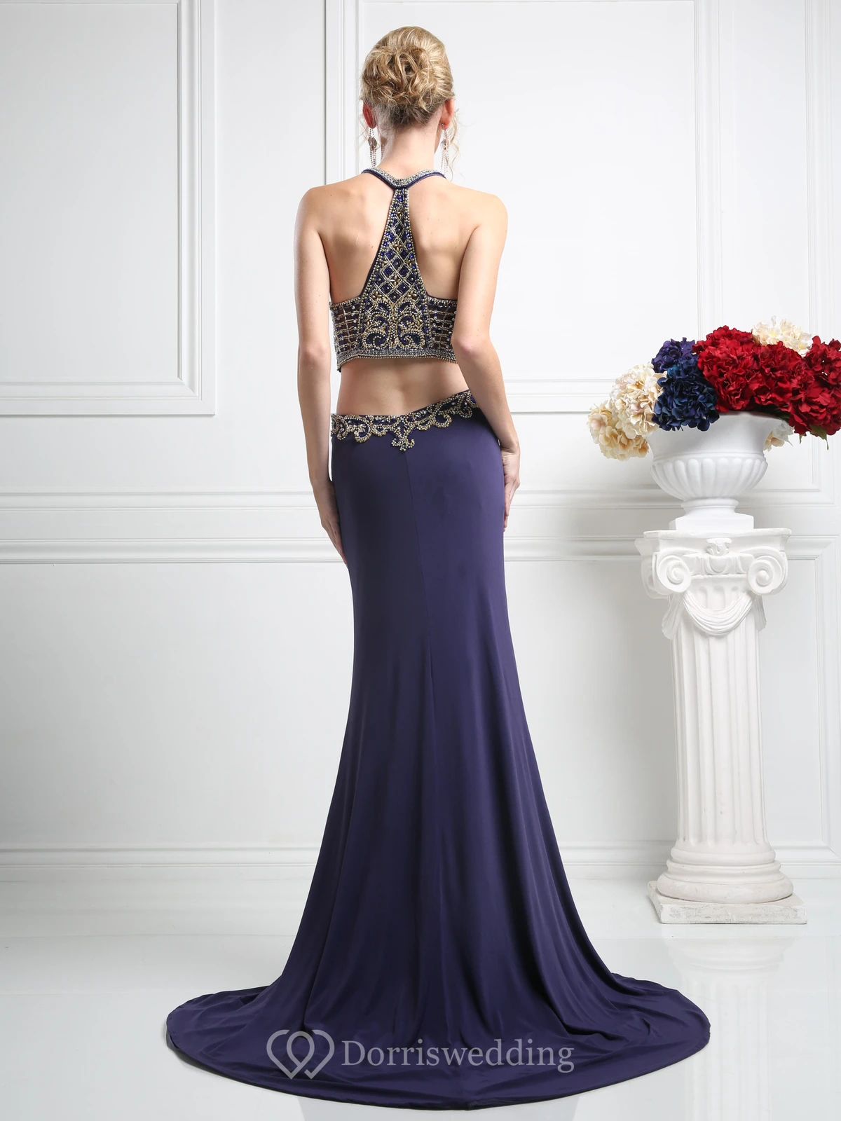 Two-Piece Sheath Jewel-Neck Sleeveless Jersey Dress With Beading