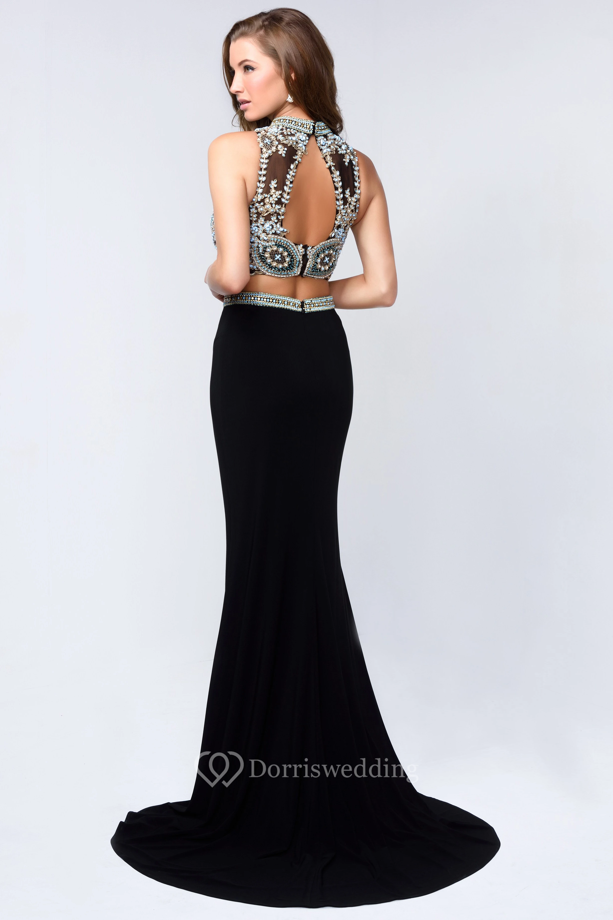 Two-Piece Sheath Jewel-Neck Sleeveless Jersey Keyhole Dress With Beading And Split Front