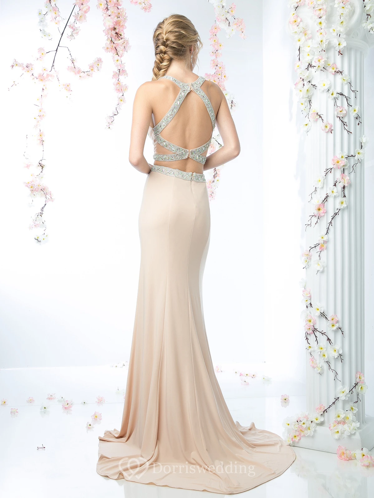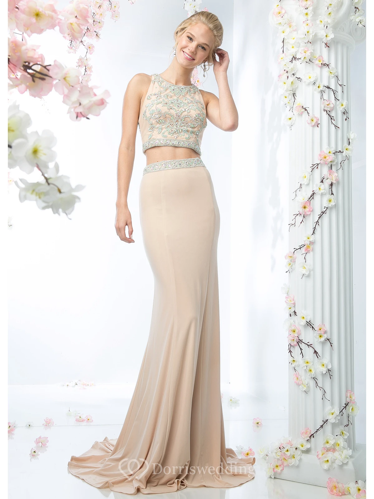 Two-Piece Sheath Jewel-Neck Sleeveless Jersey Straps Dress With Beading