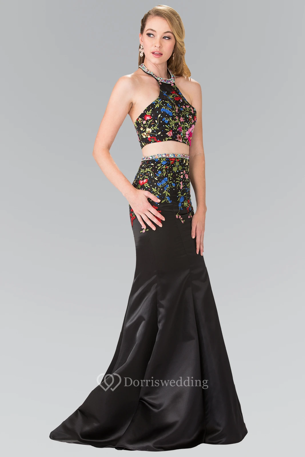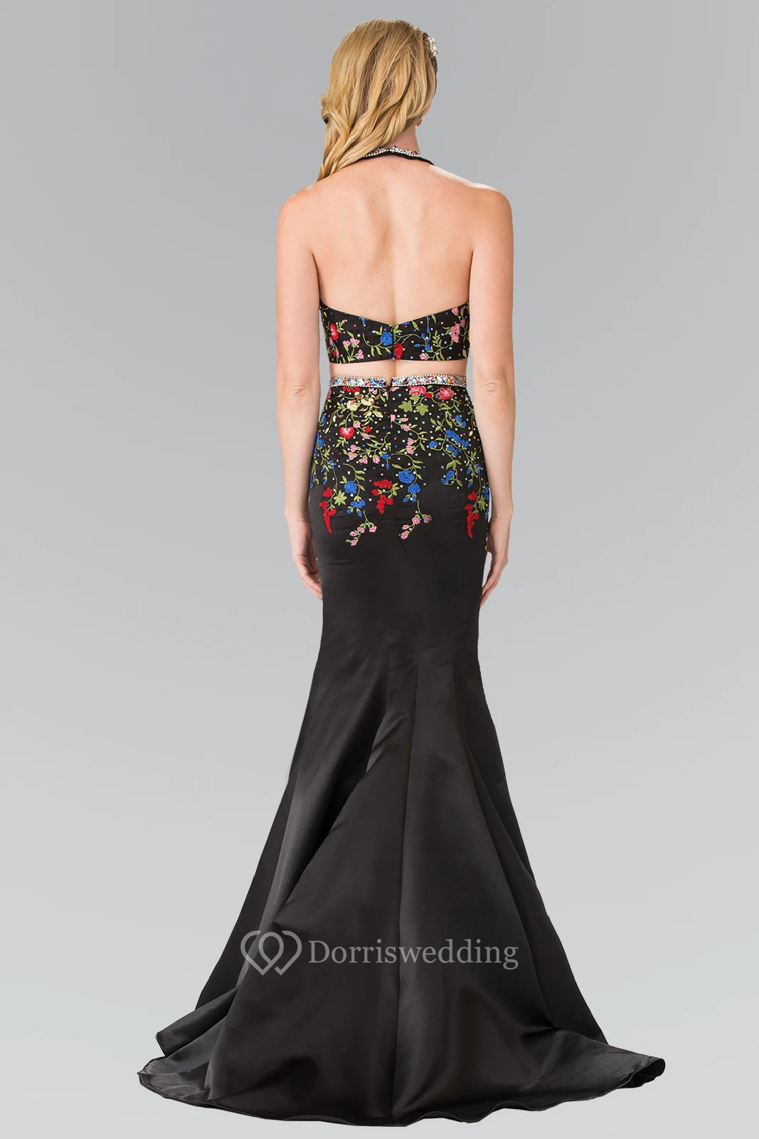 Two-Piece Sheath Scoop-Neck Sleeveless Satin Backless Dress With Beading And Embroidery