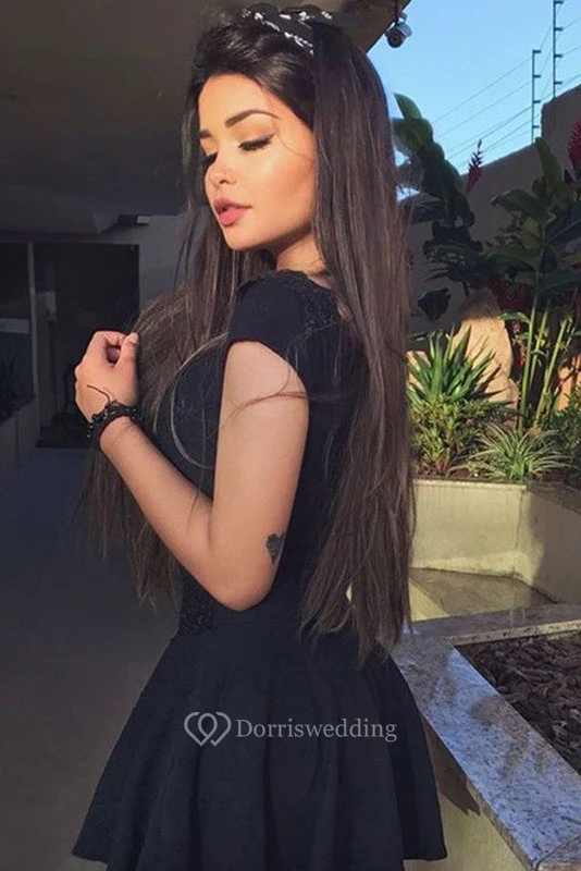 Two Piece Short Sleeve Chiffon V-neck Zipper Short Mini Homecoming Dress