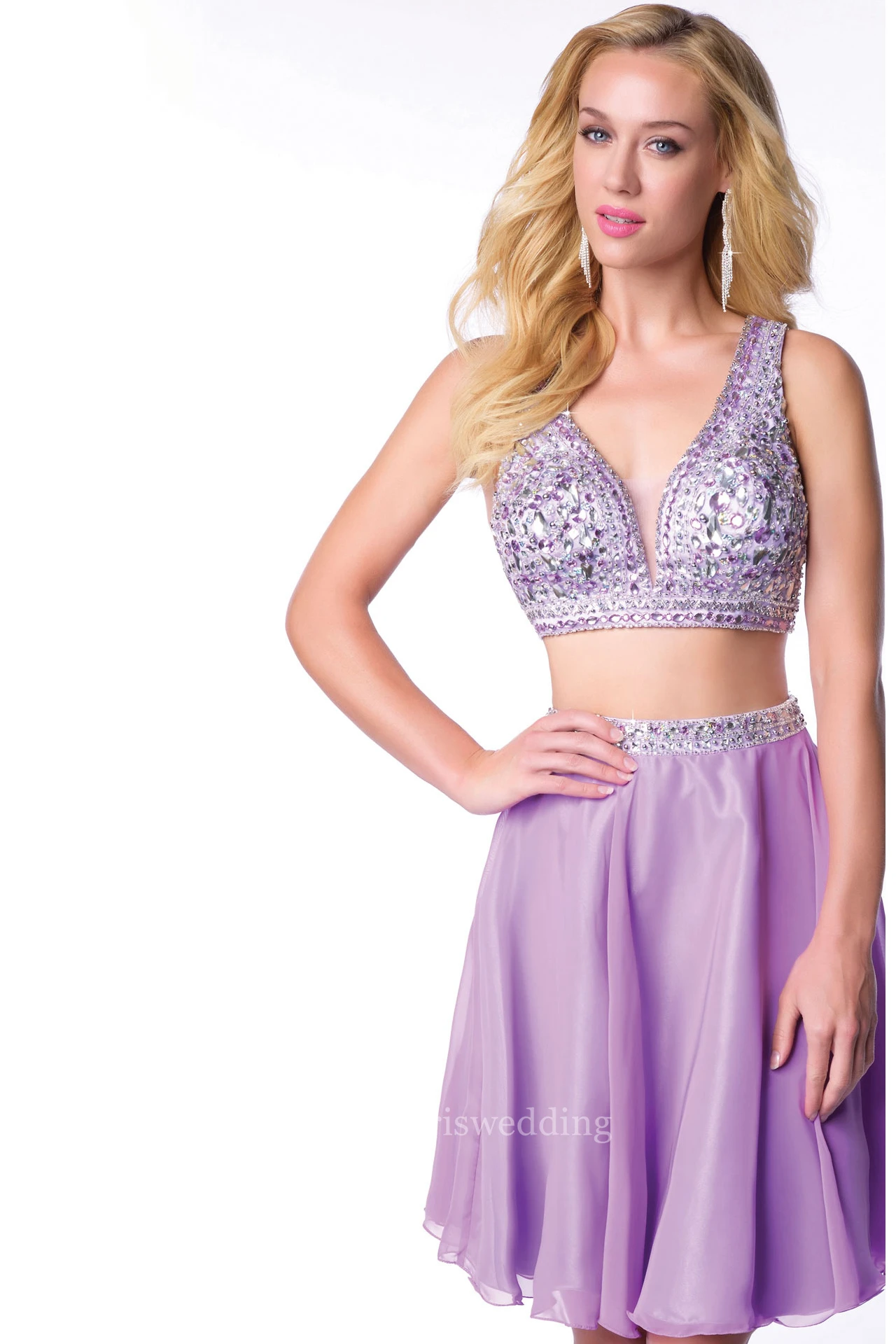 Two-Piece Sleeveless Chiffon Short Homecoming Dress With Bling Bust