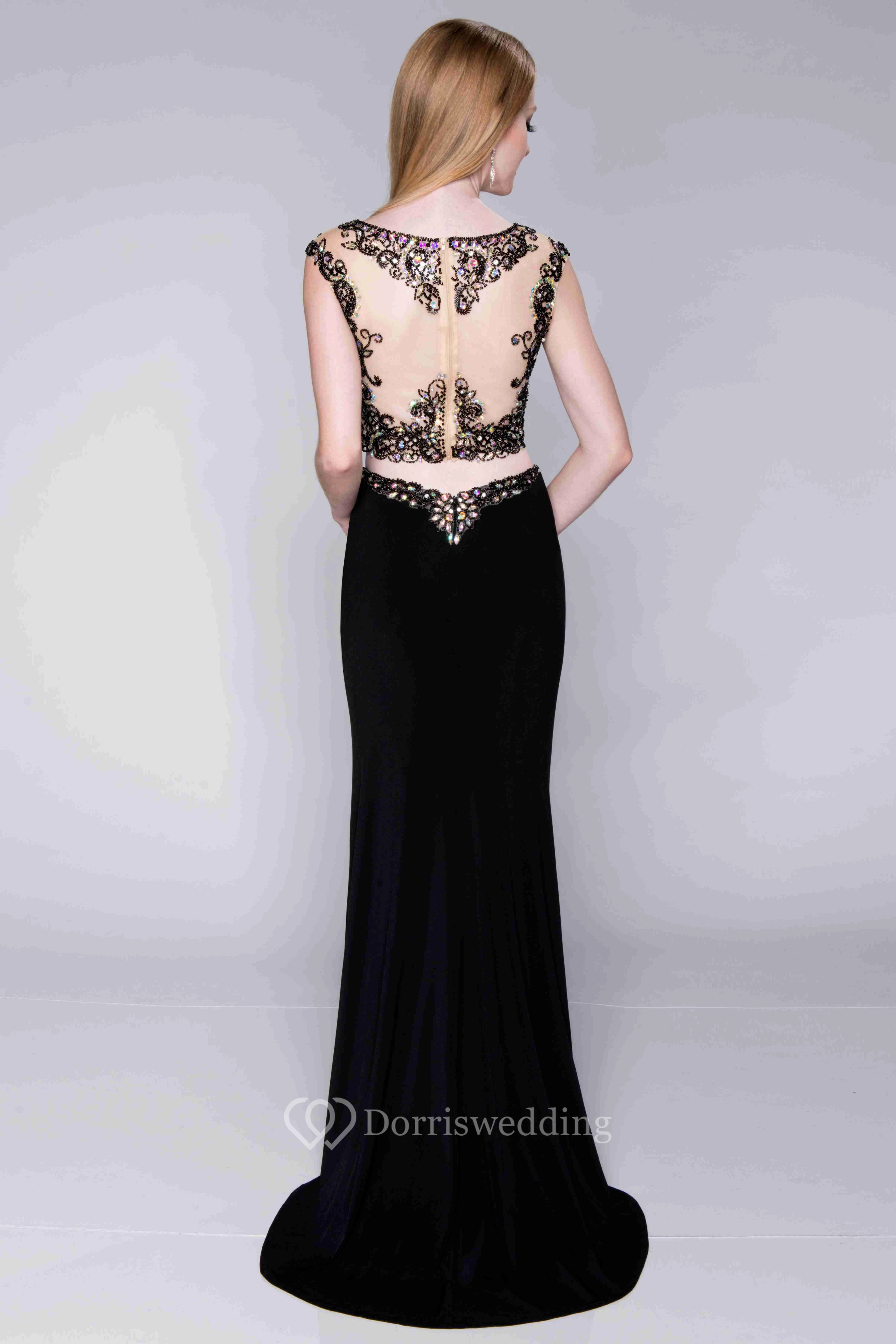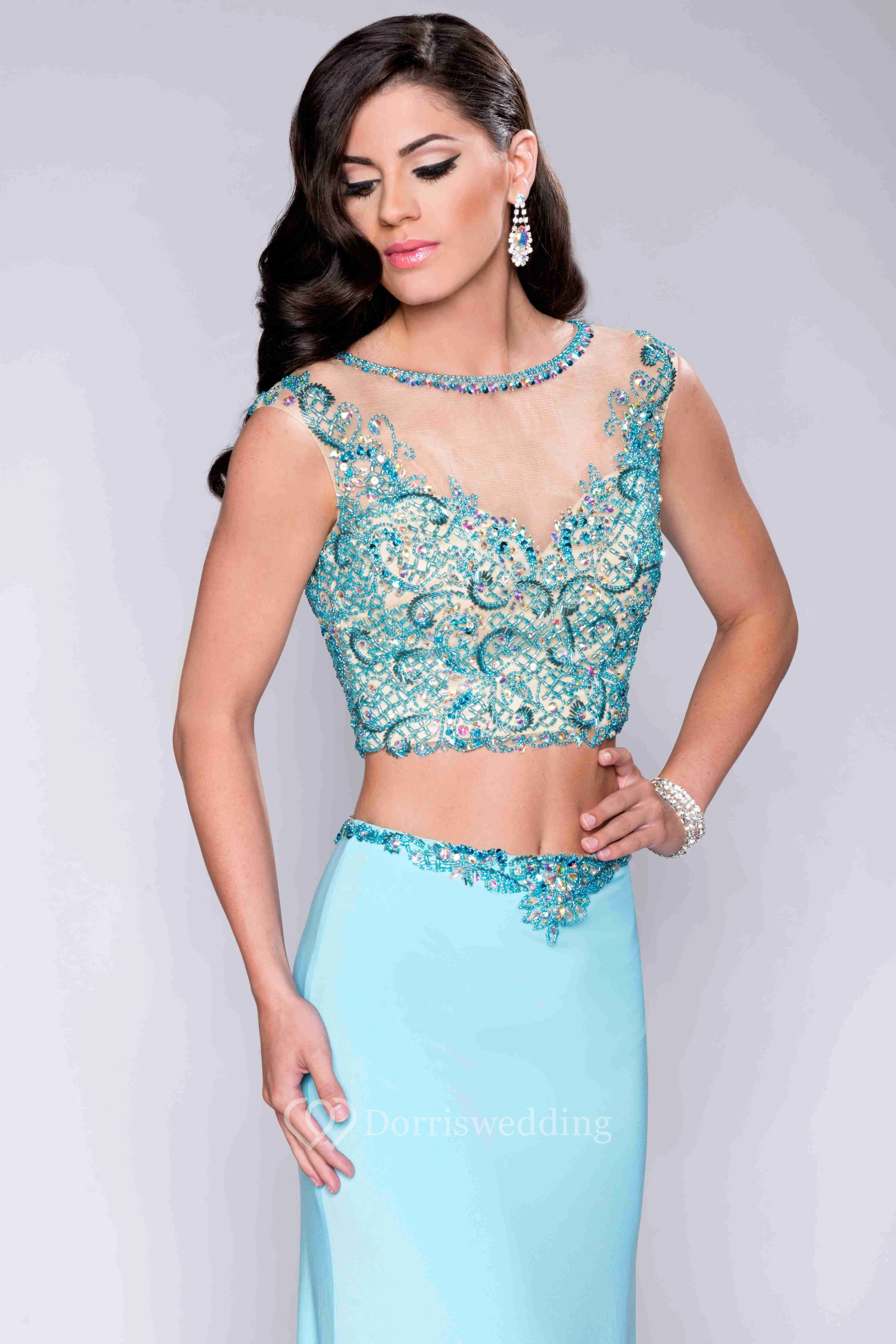 Two-Piece Sleeveless Sheath Jersey Prom Dress With Jeweled Bodice