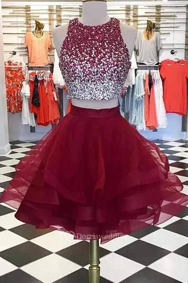 Two Piece Sleeveless Tulle High Neck Short Mini Homecoming Dress