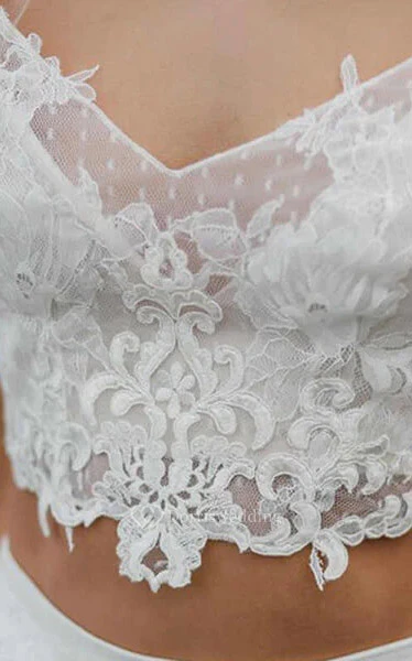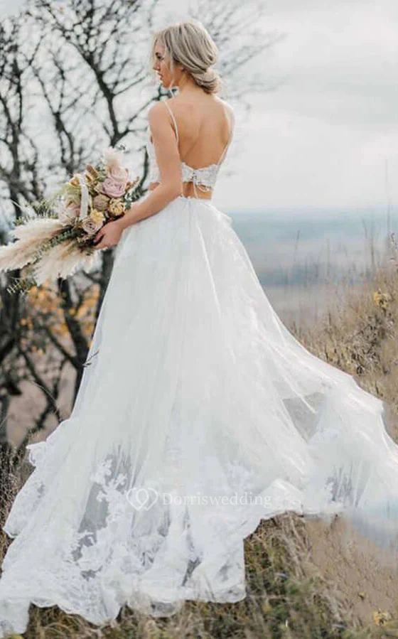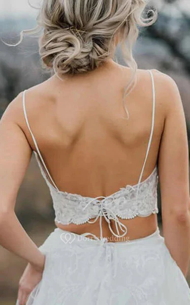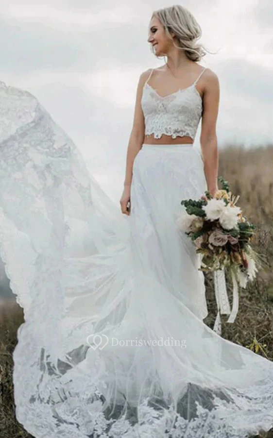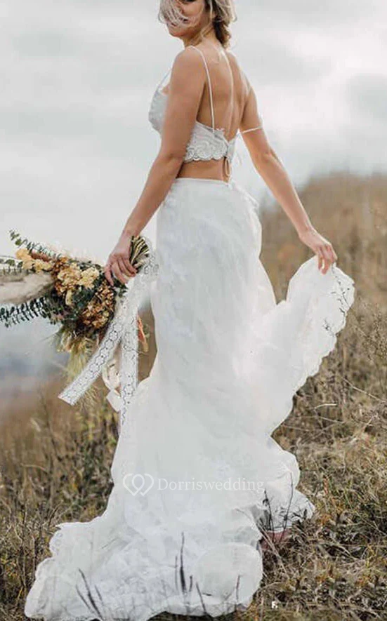 Two Piece Spaghetti Country Lace Corset Back Boho Wedding Dress