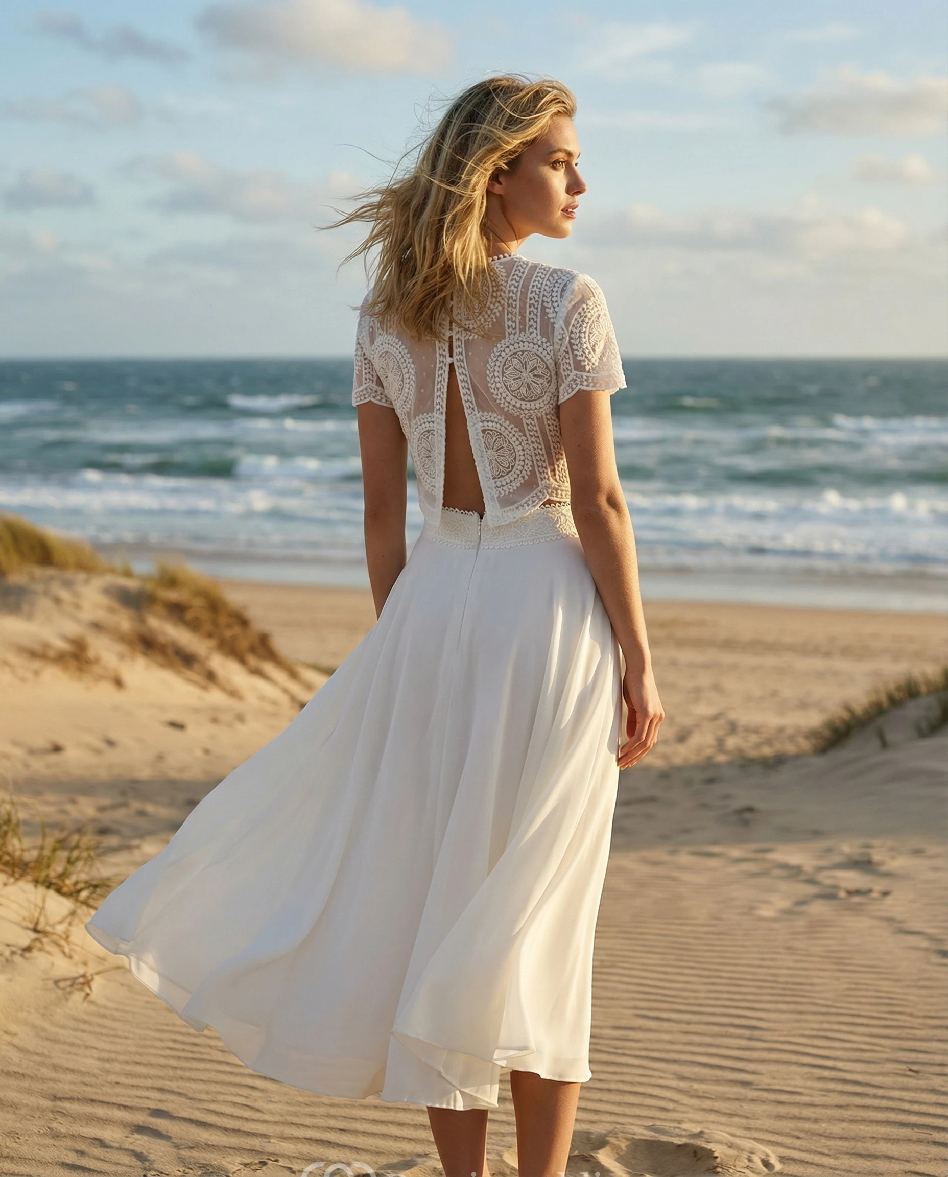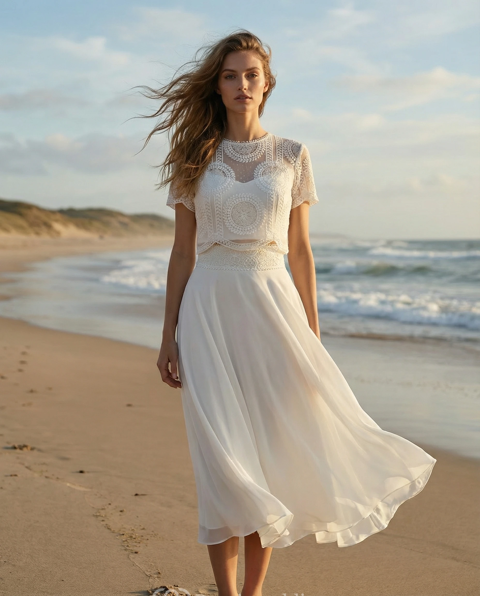 Two-Piece Tea-Length Chiffon Wedding Dress