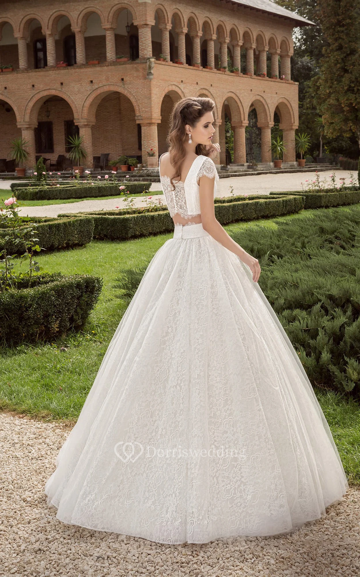 Two Pieces Short Sleeve Illusion Back Bridal Dress