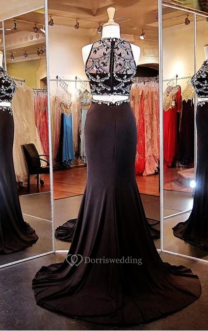 Two Pieces Trumpet Jewel Beading Court Train Prom Dress