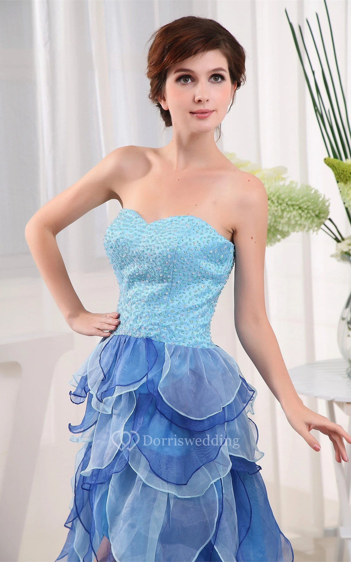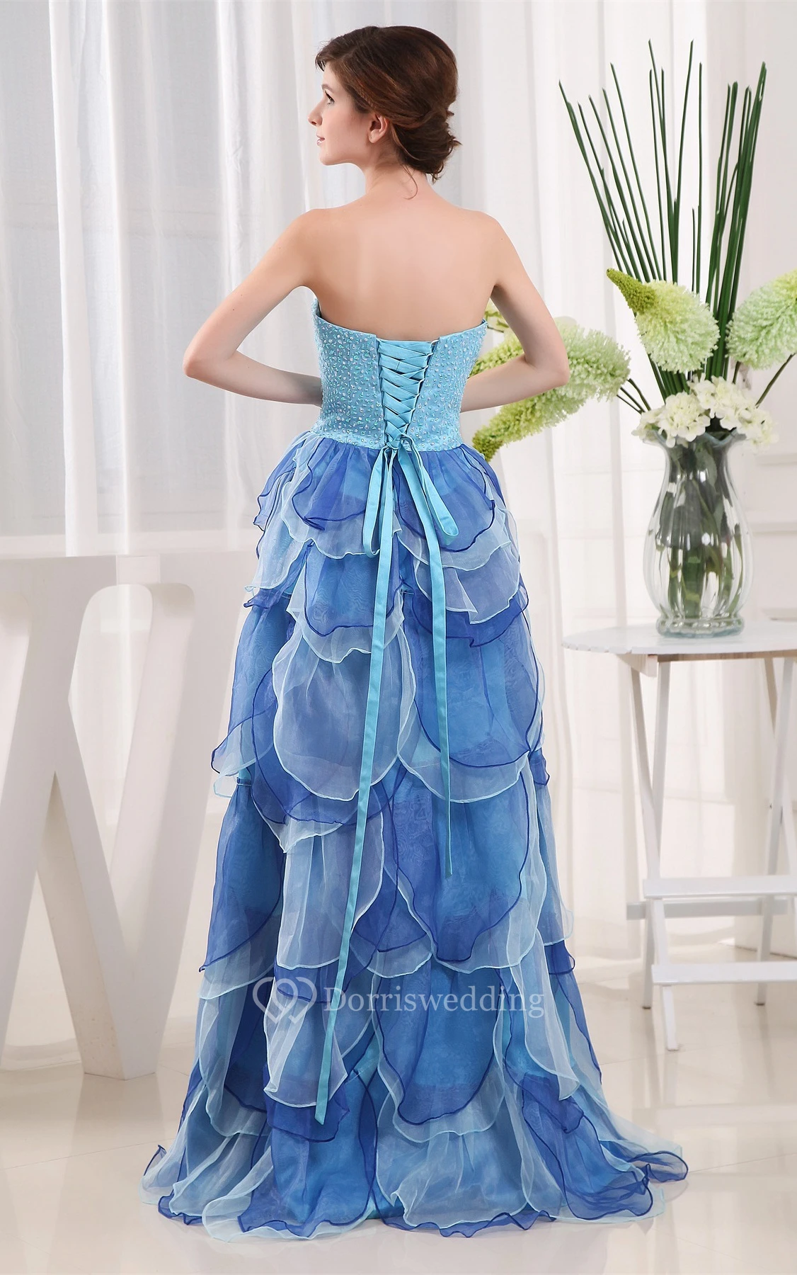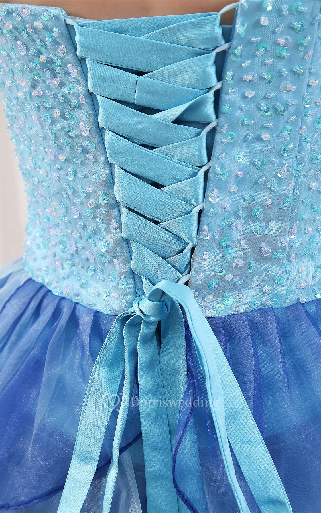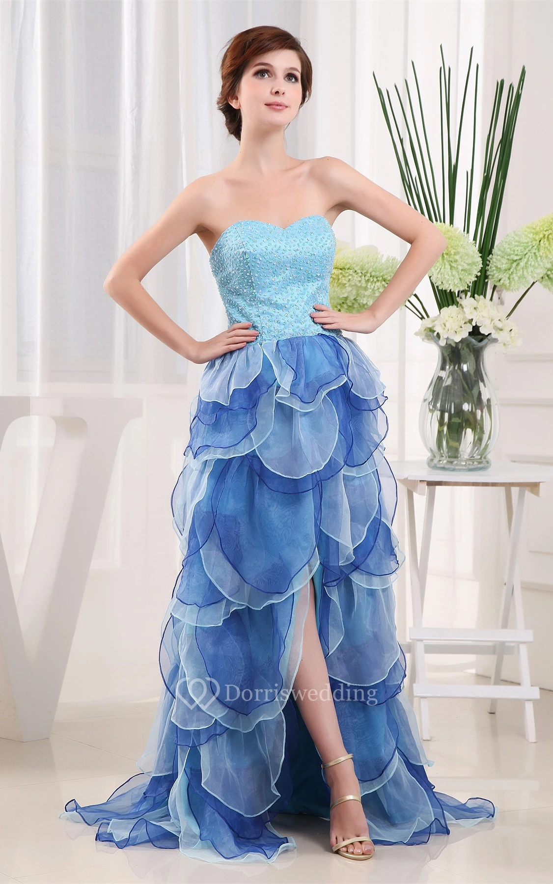 Two-Tone Front-Split Sweetheart Corset Back and Dress With Tiers