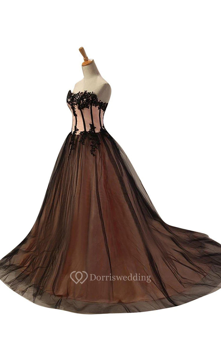 Two Tone Lace and Tulle Ball Gown With Lace Up Back