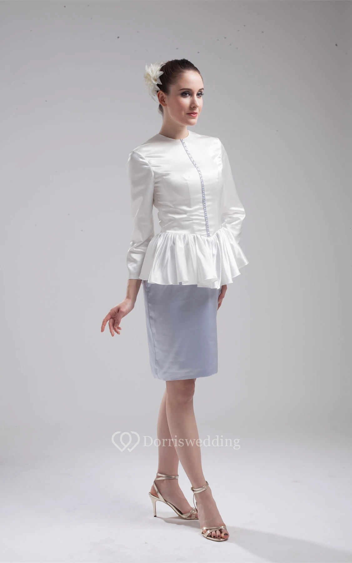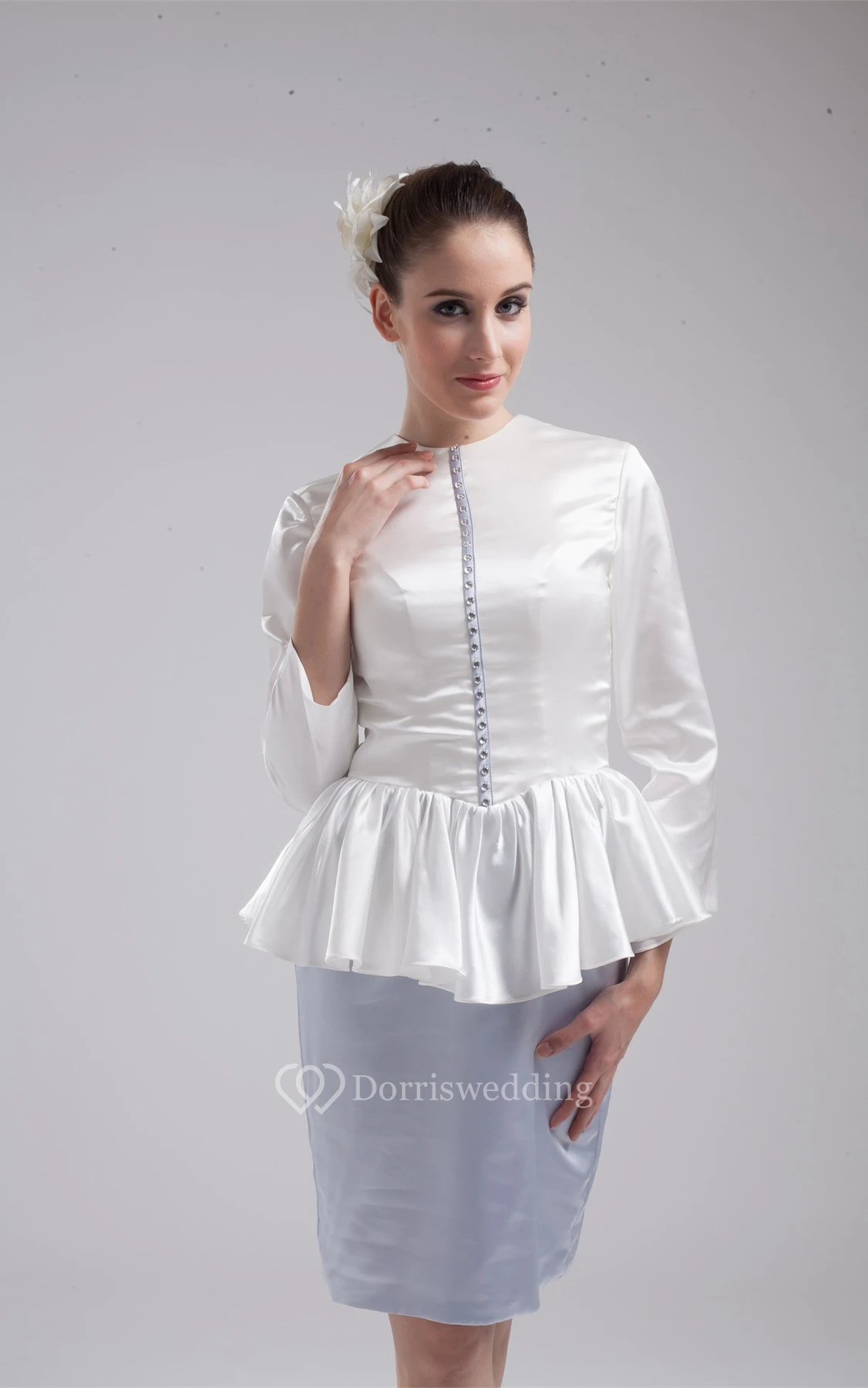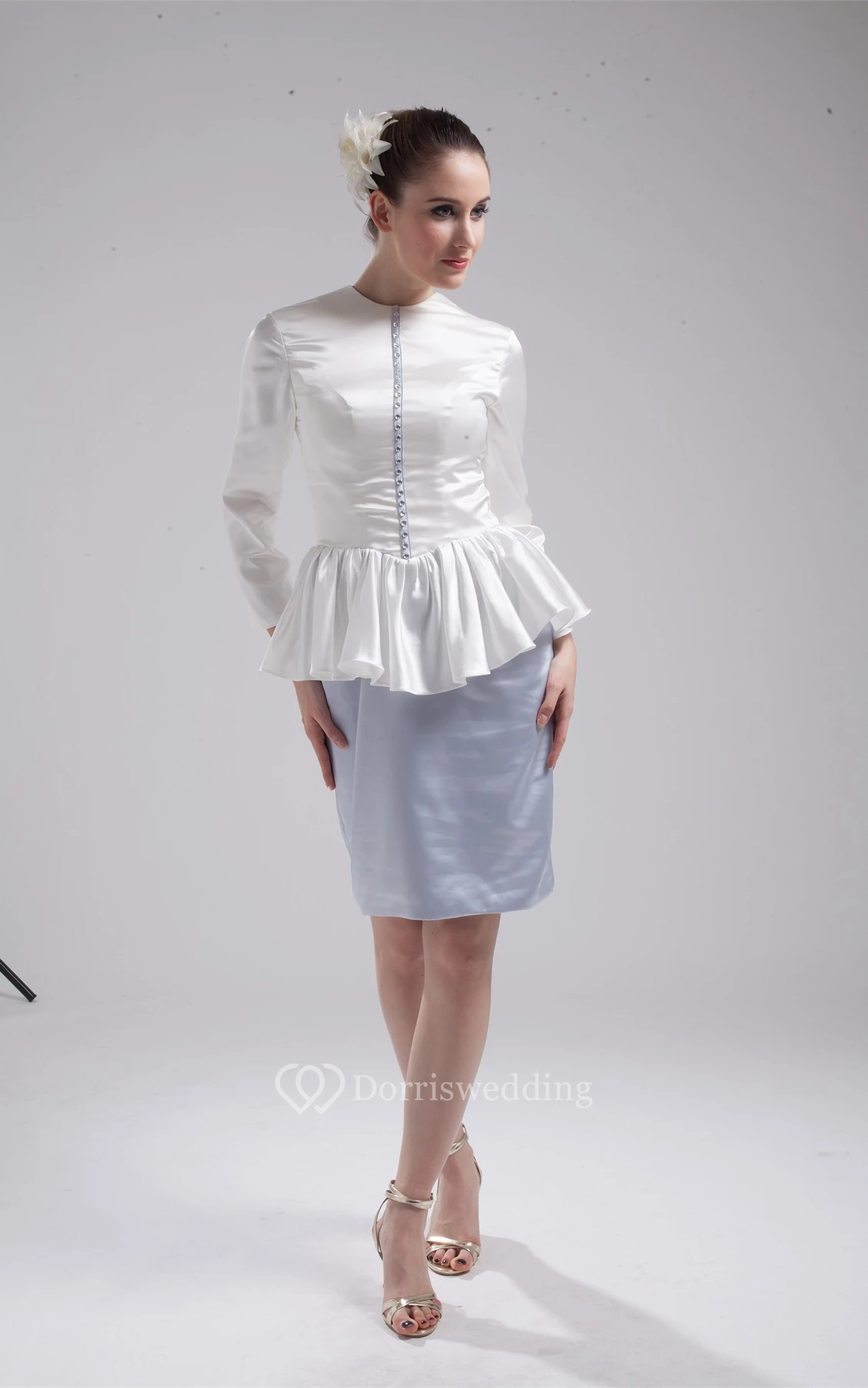 Two-Tone Long-Sleeve Pencil High-Neck Dress With Peplum