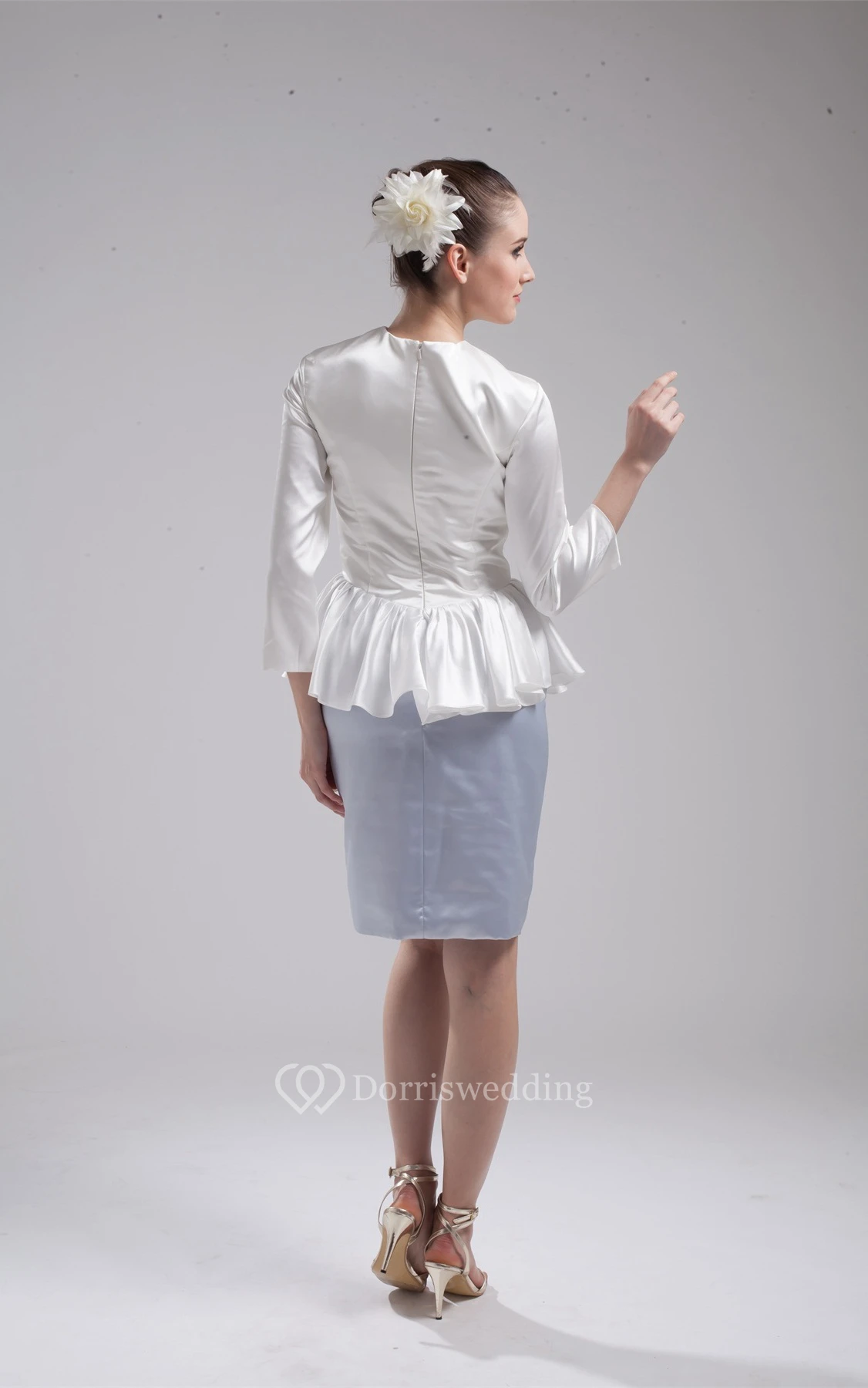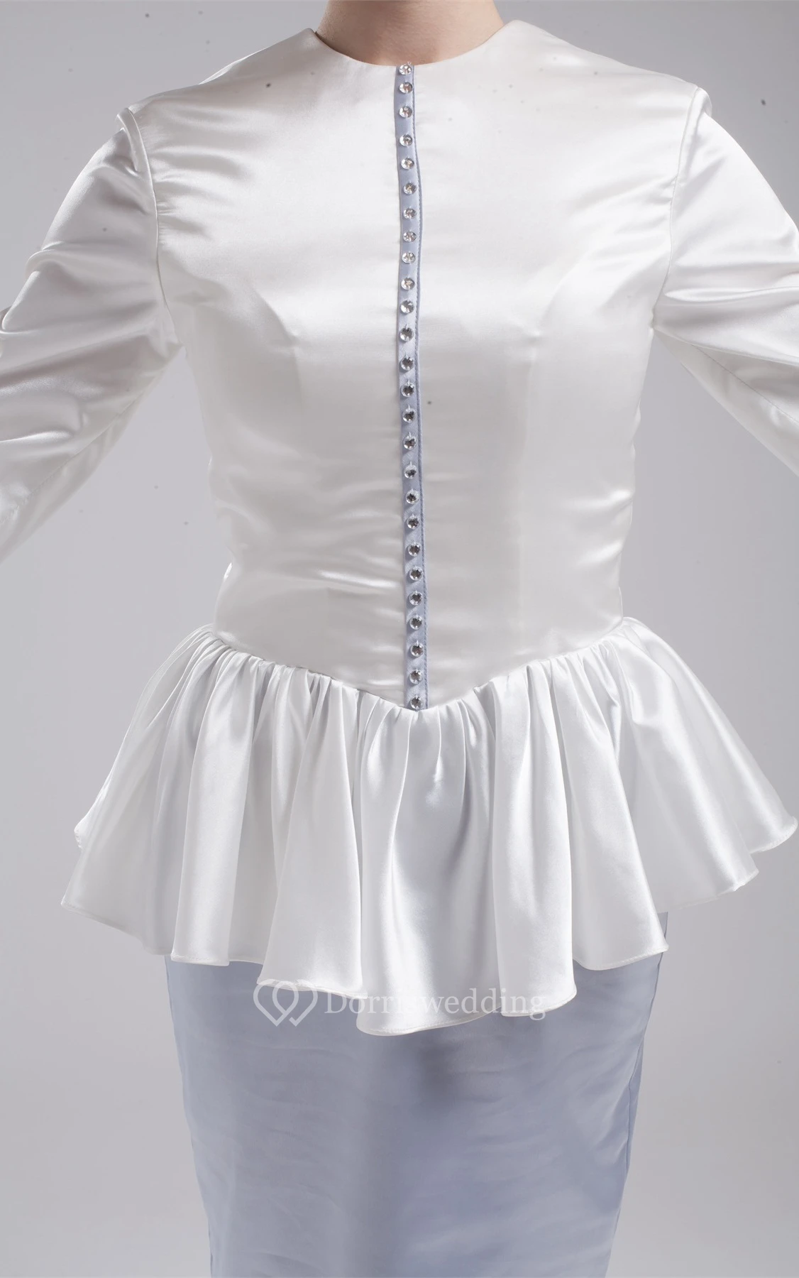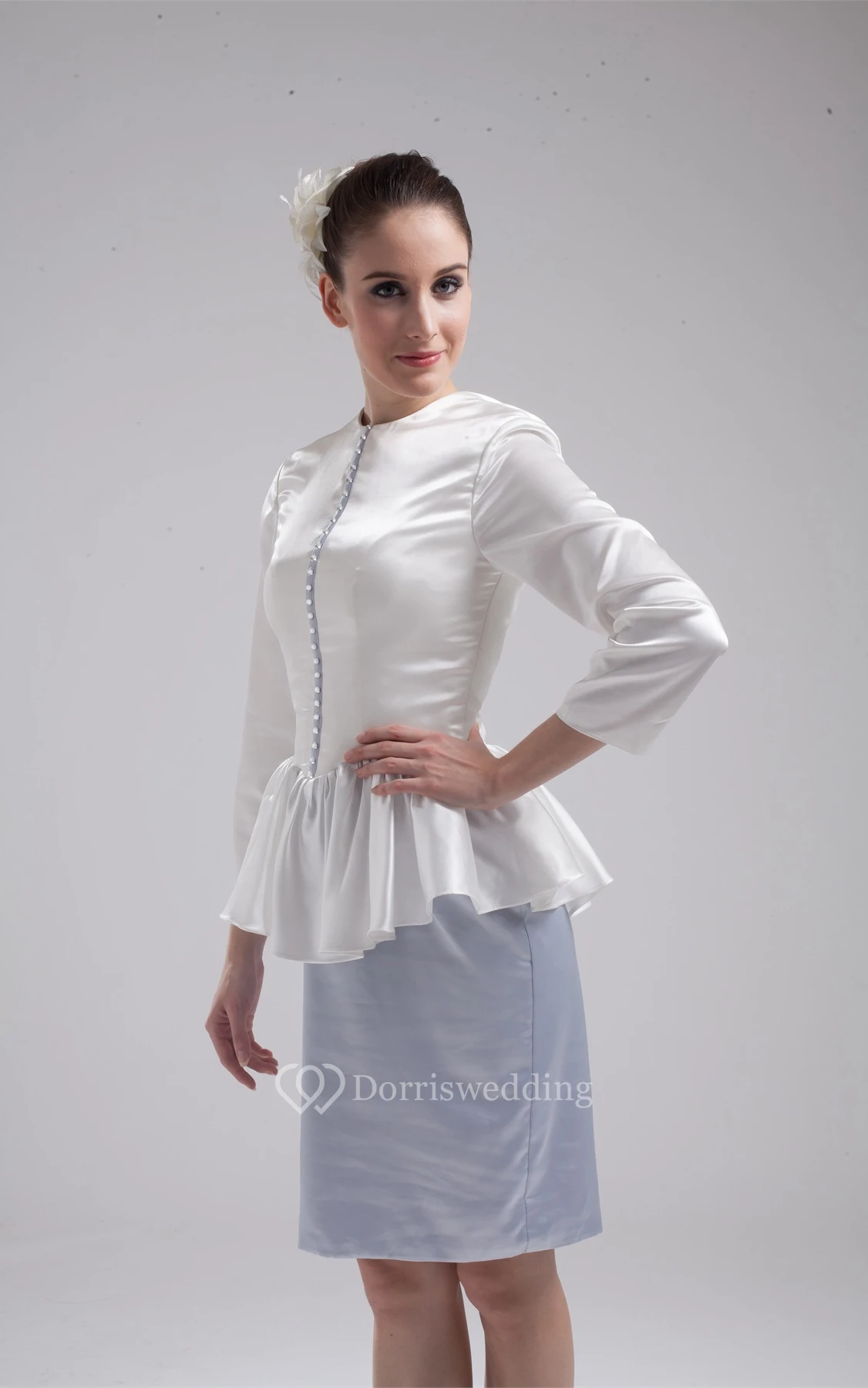 Two-Tone Long-Sleeve Pencil High-Neck Dress With Peplum
