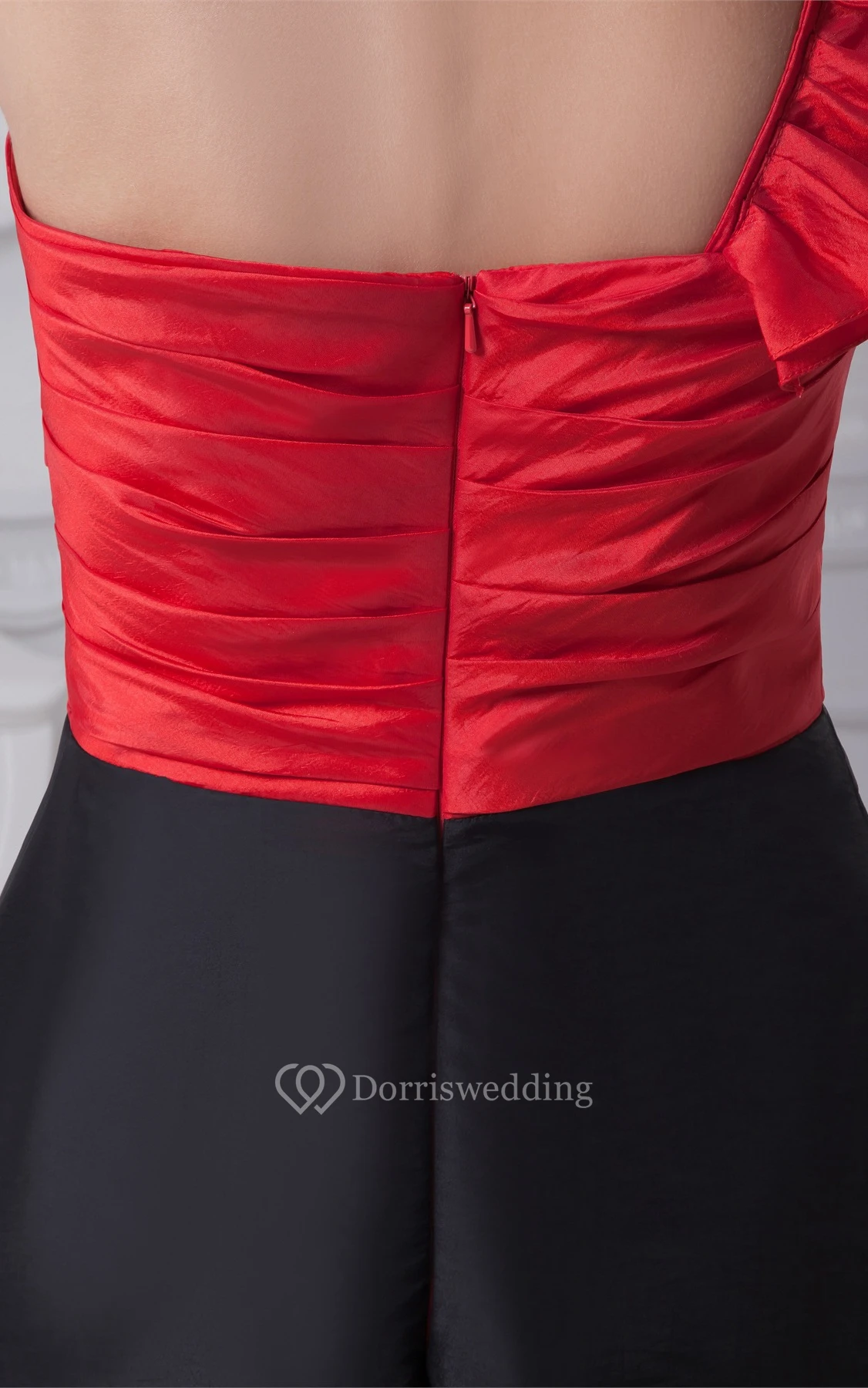 Two-Tone Satin Short One-Shoulder Dress With Ruching