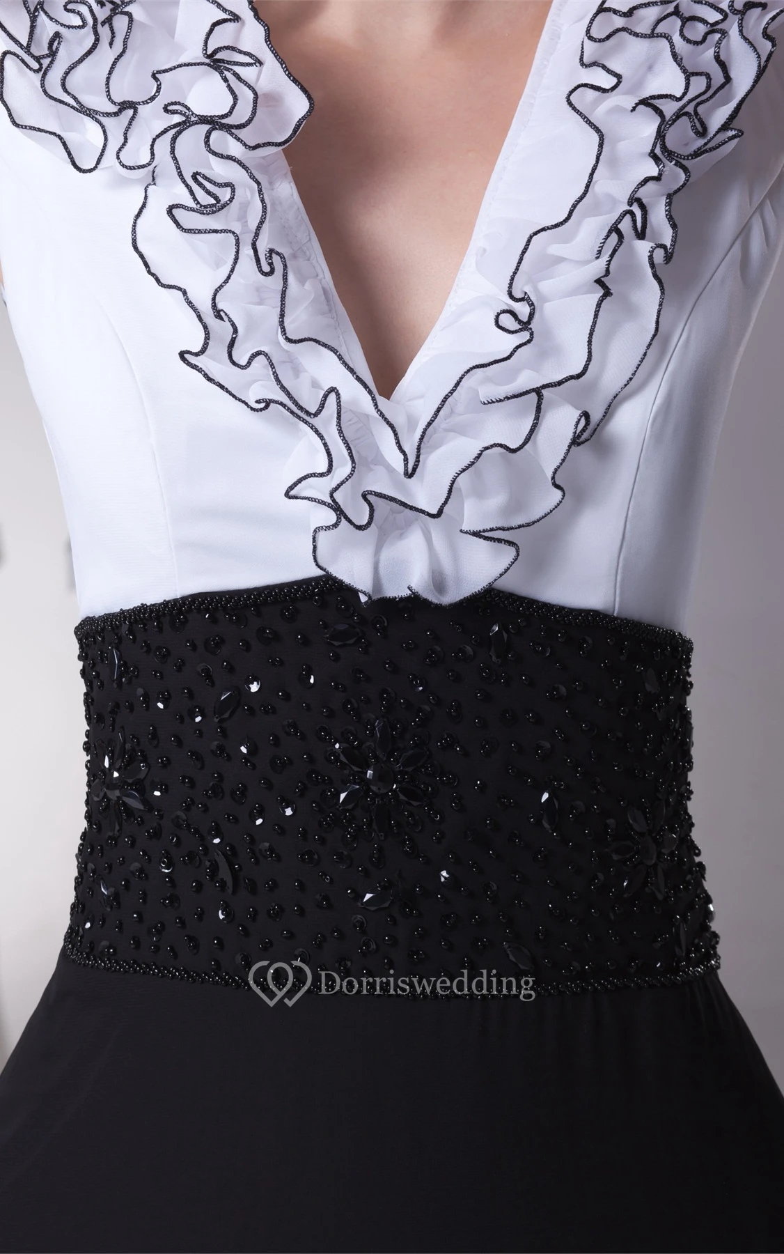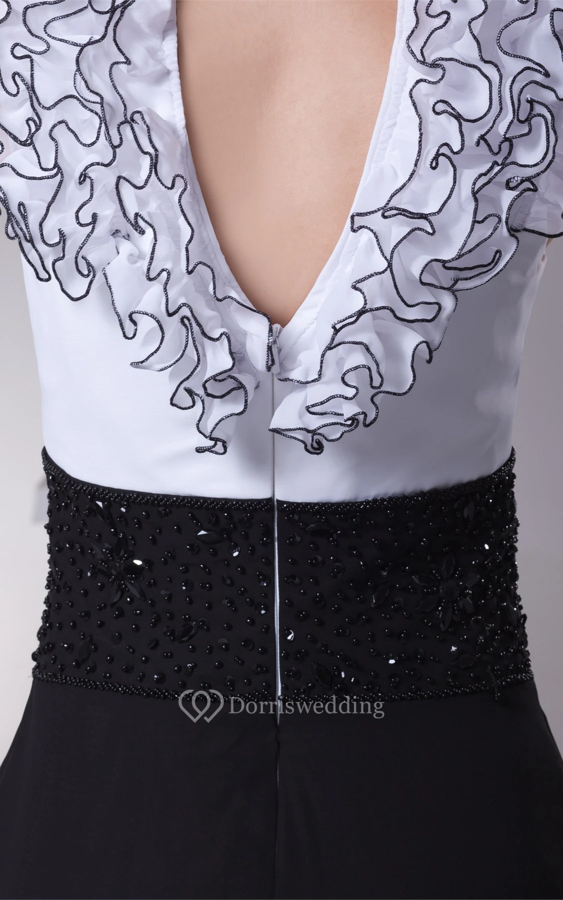 Two-Tone Sheath Floor-Length Plunged Ruffles and Dress With Beading