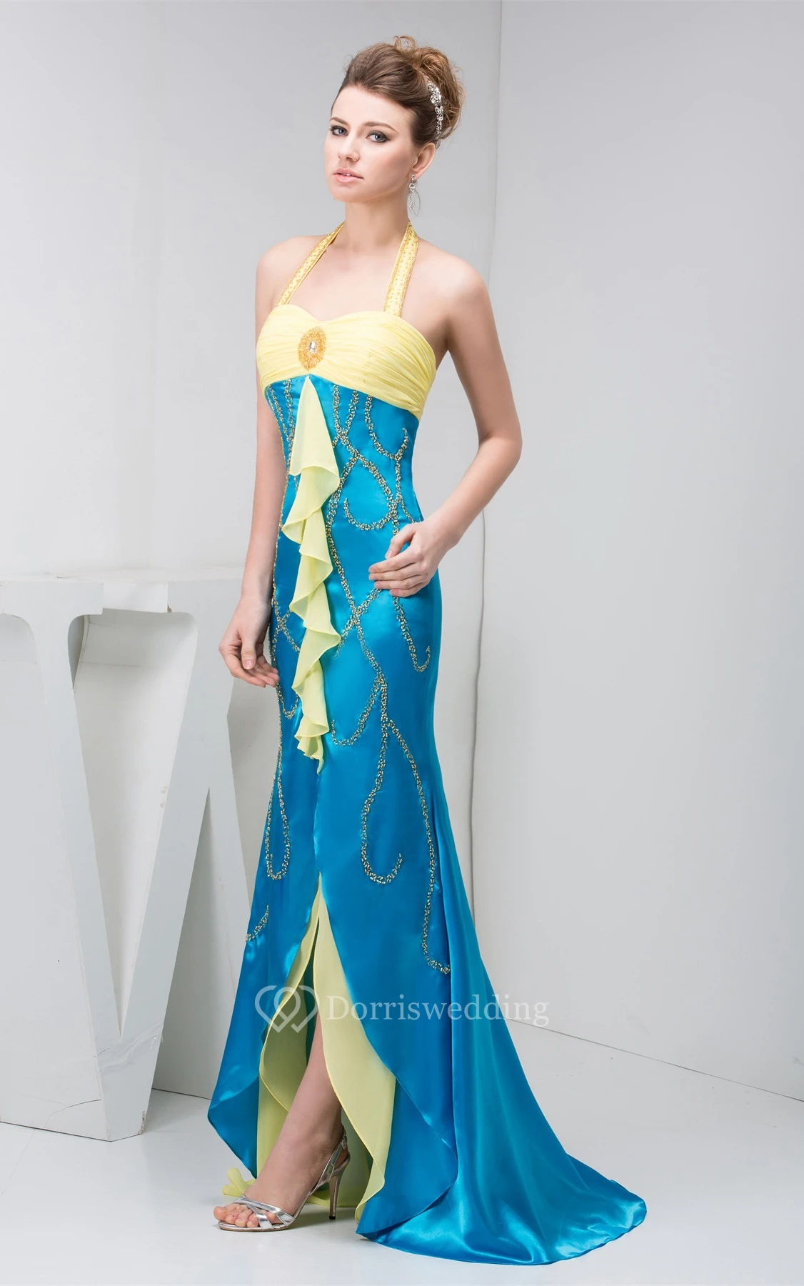 Two-Tone Sheath Haltered Stress and Dress With Broach