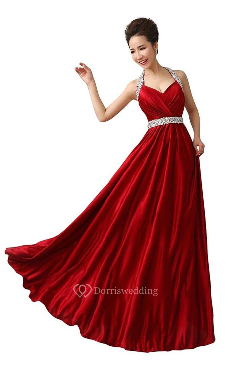 Unique Halter A-line Gown With Beaded Neckline