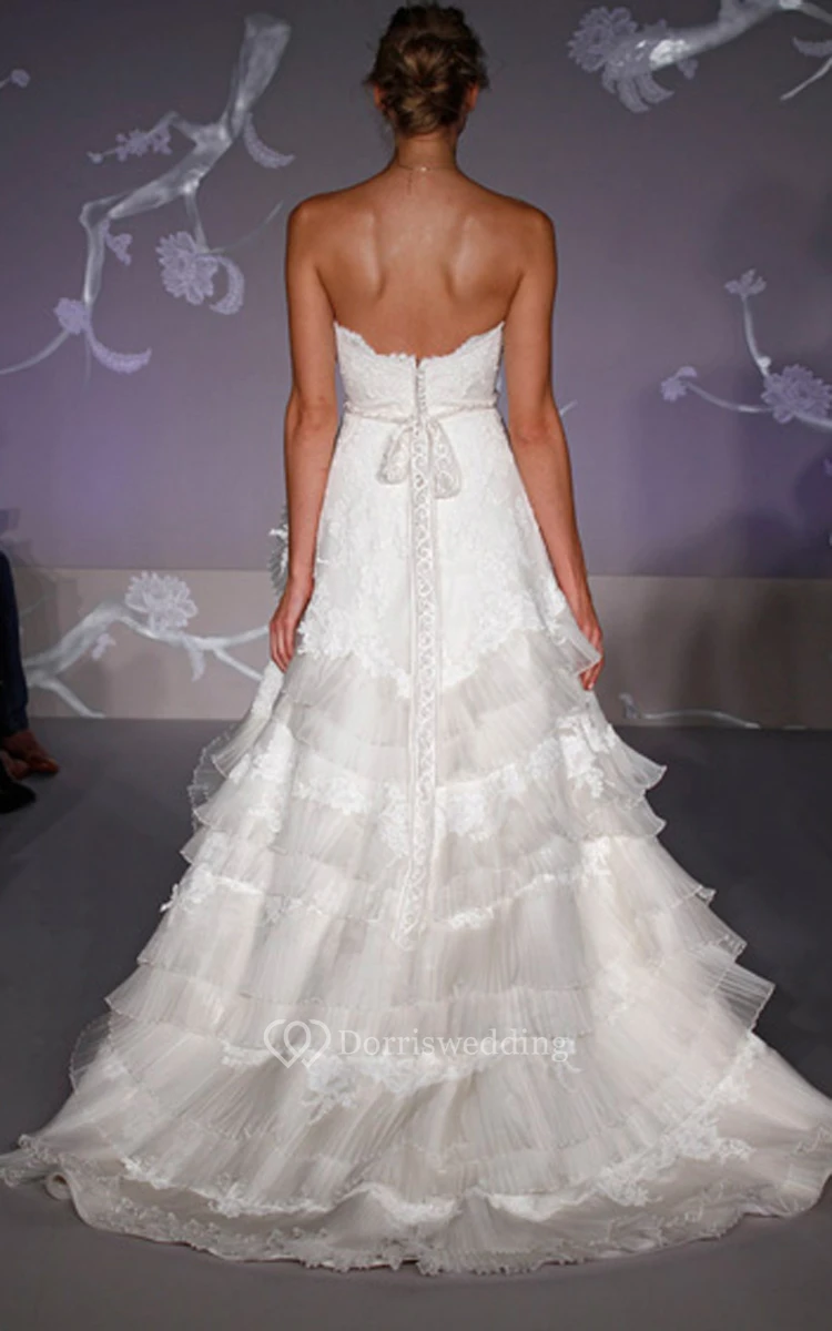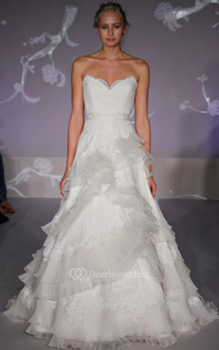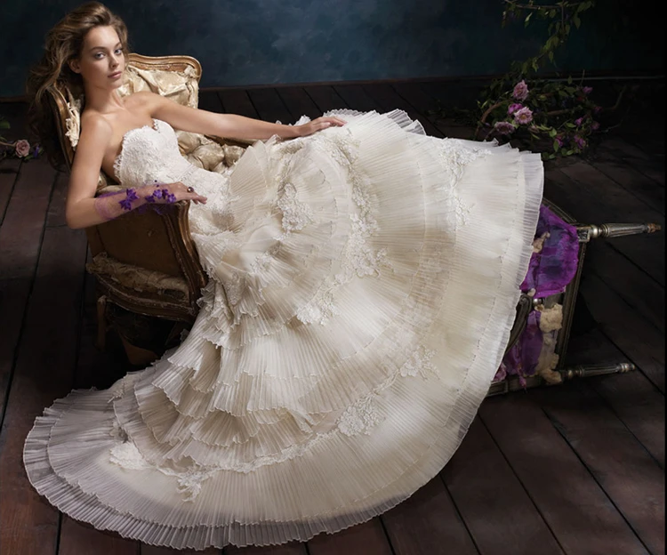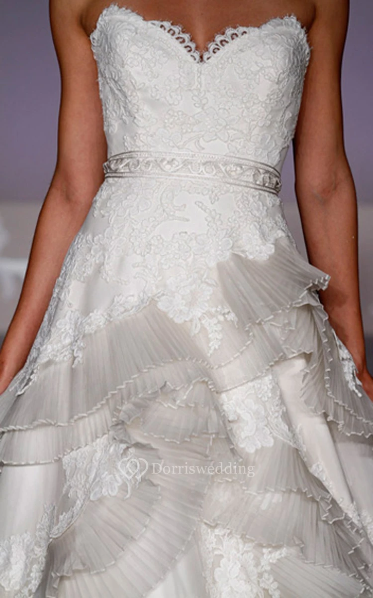 Unique Lace Bodice Organza Ball Gown With Pleated Tiers