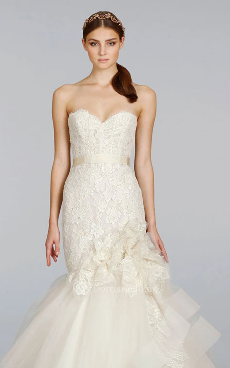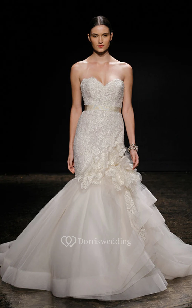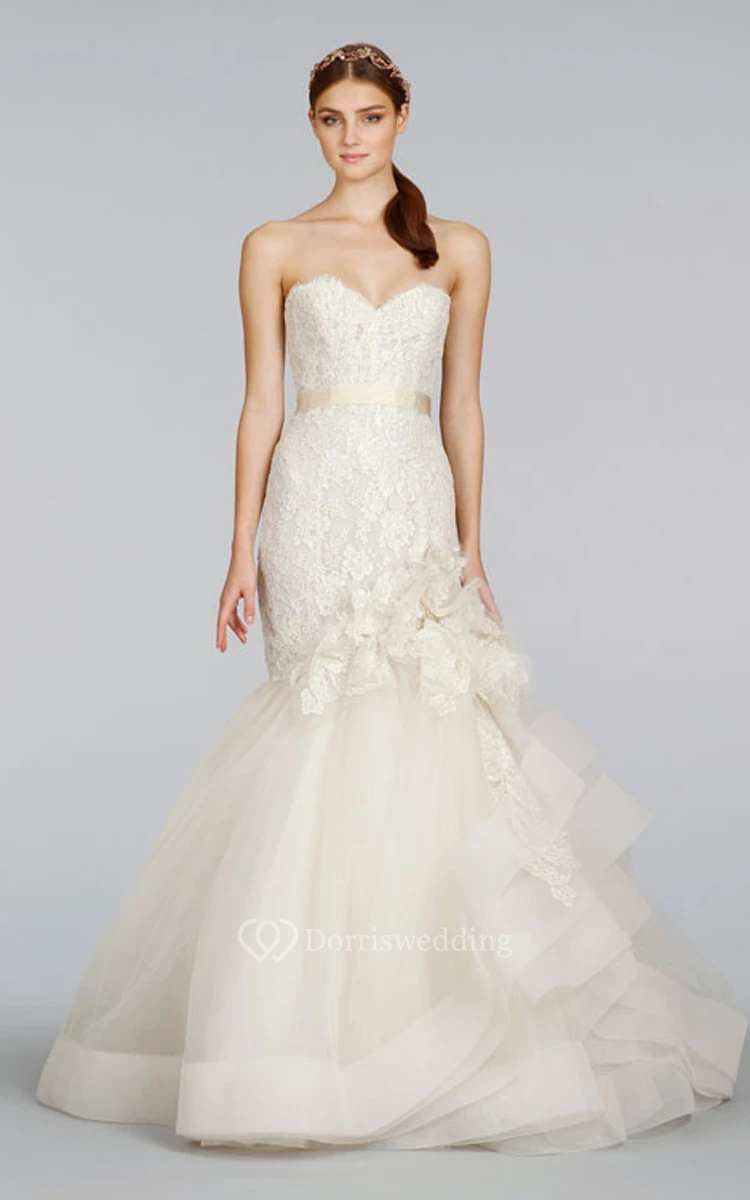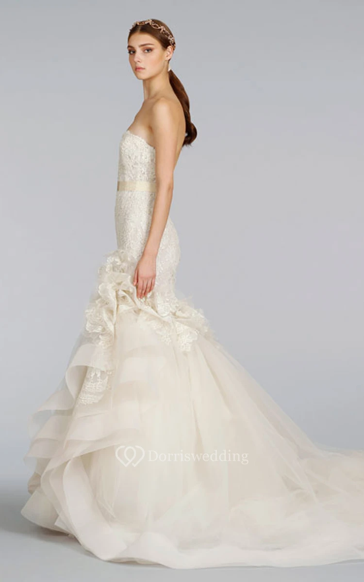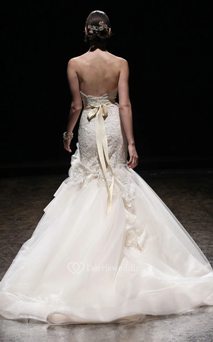 Unique Lace Bodice Tulle Pick-up Dress With Ribbon and Floral Corsage