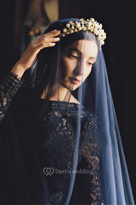 Unique Navy Blue Tulle Bridal Veil