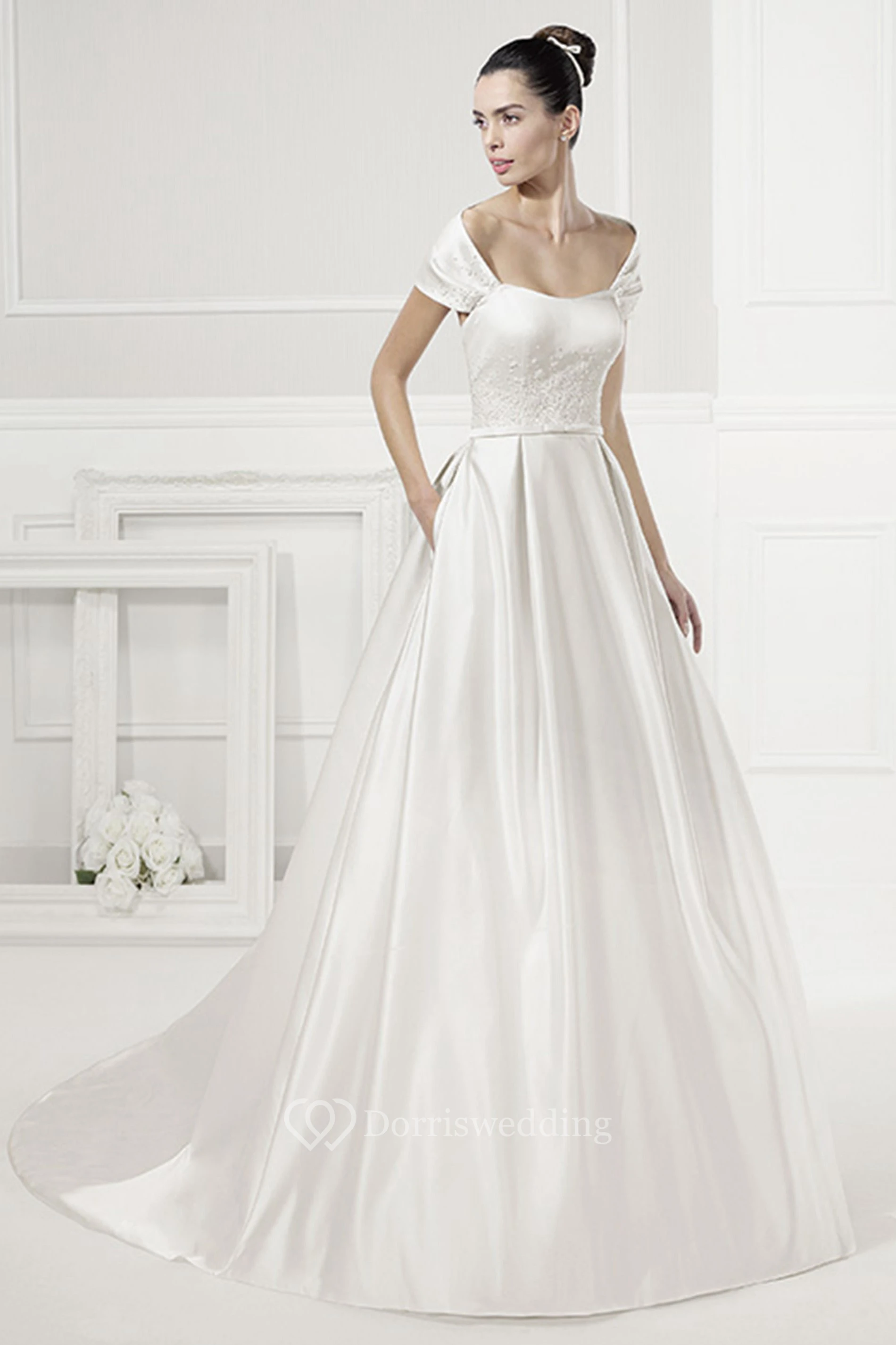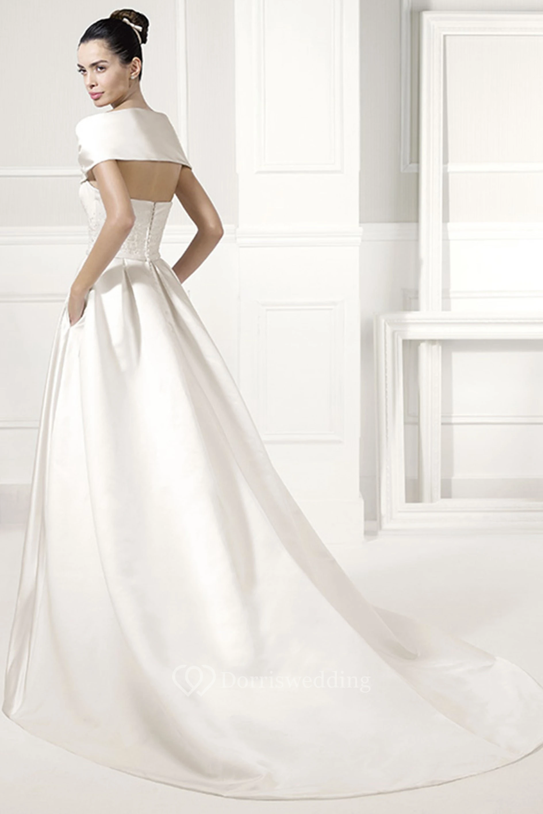Unique Off-Shoulder Taffeta Bridal Gown With Belt