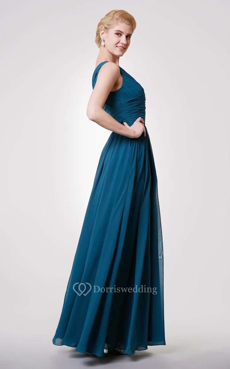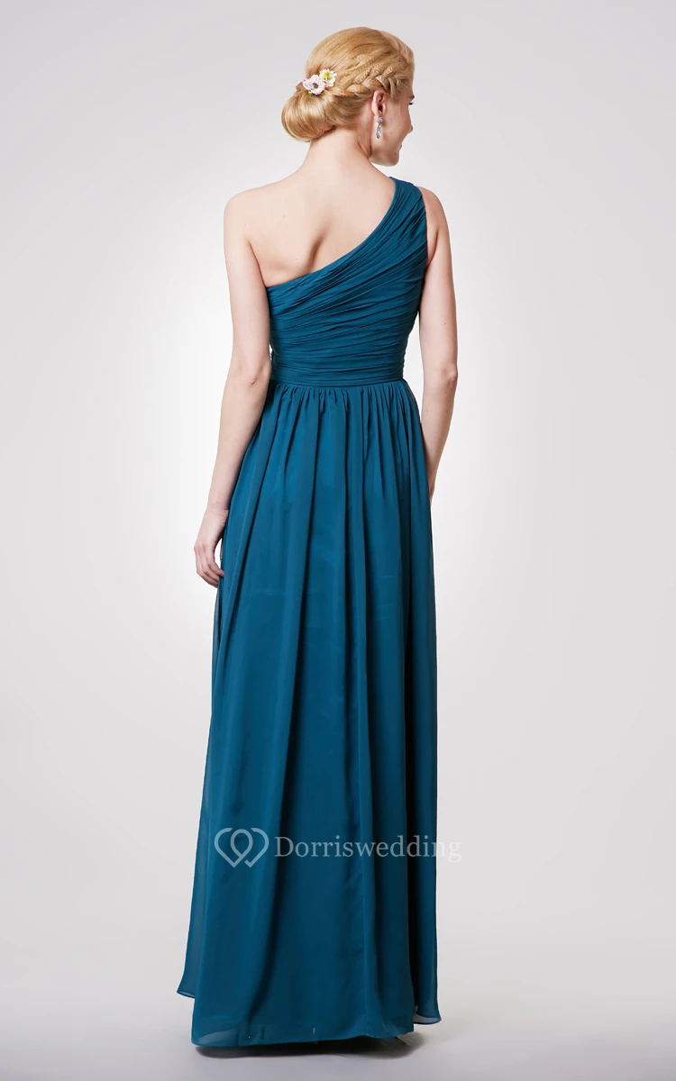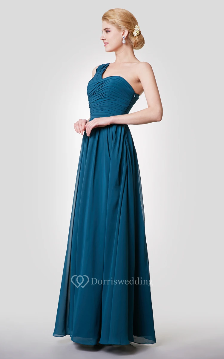 Unique One Shoulder A-line Chiffon Long Dress With Ruching