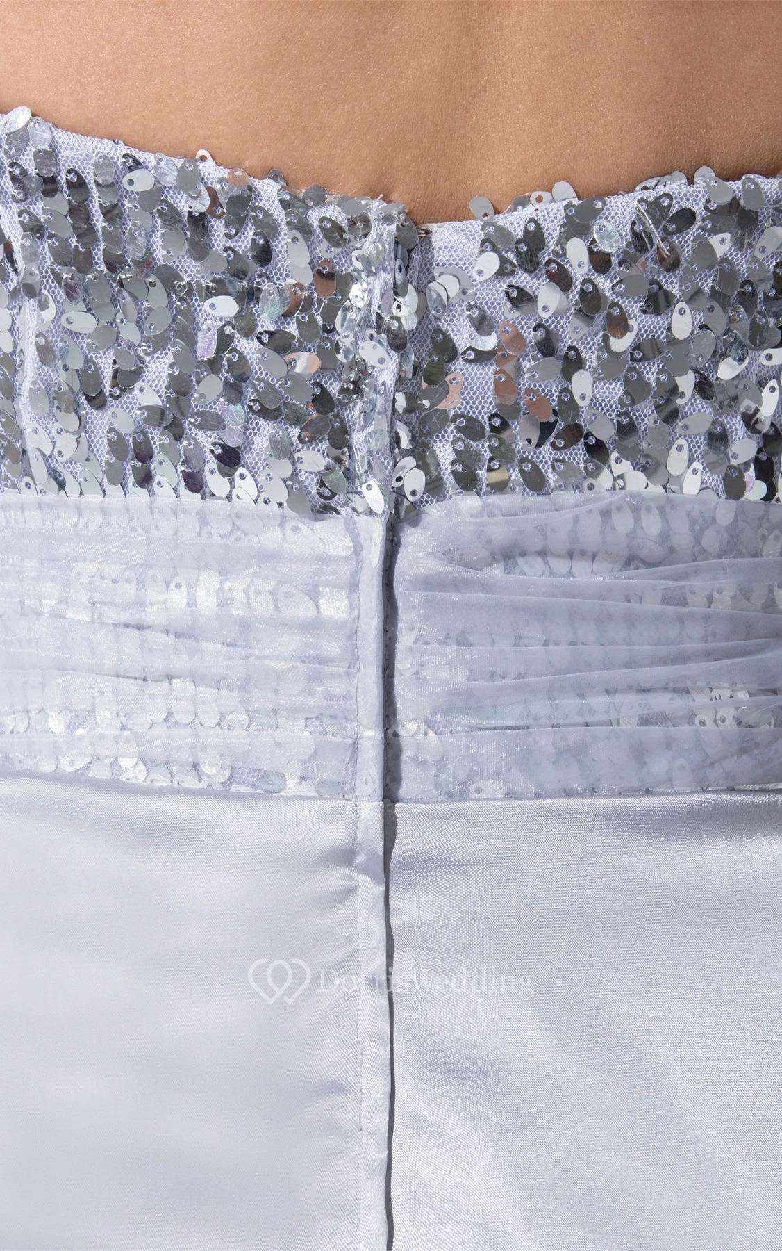 Unique Sequined Sweetheart Knee Dress With Bowed Sash and Tiered Ruffle