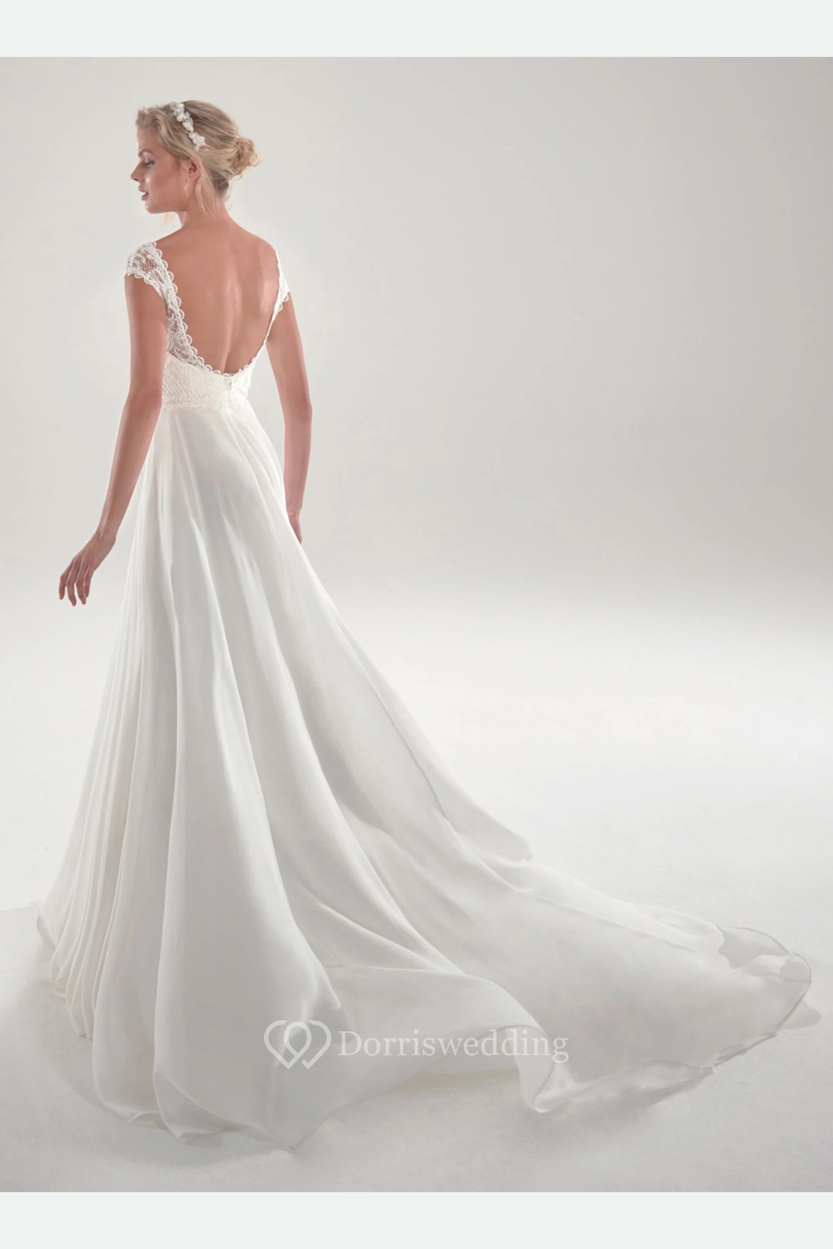 Unique Short Sleeve Chffon Open Back Bridal Gown