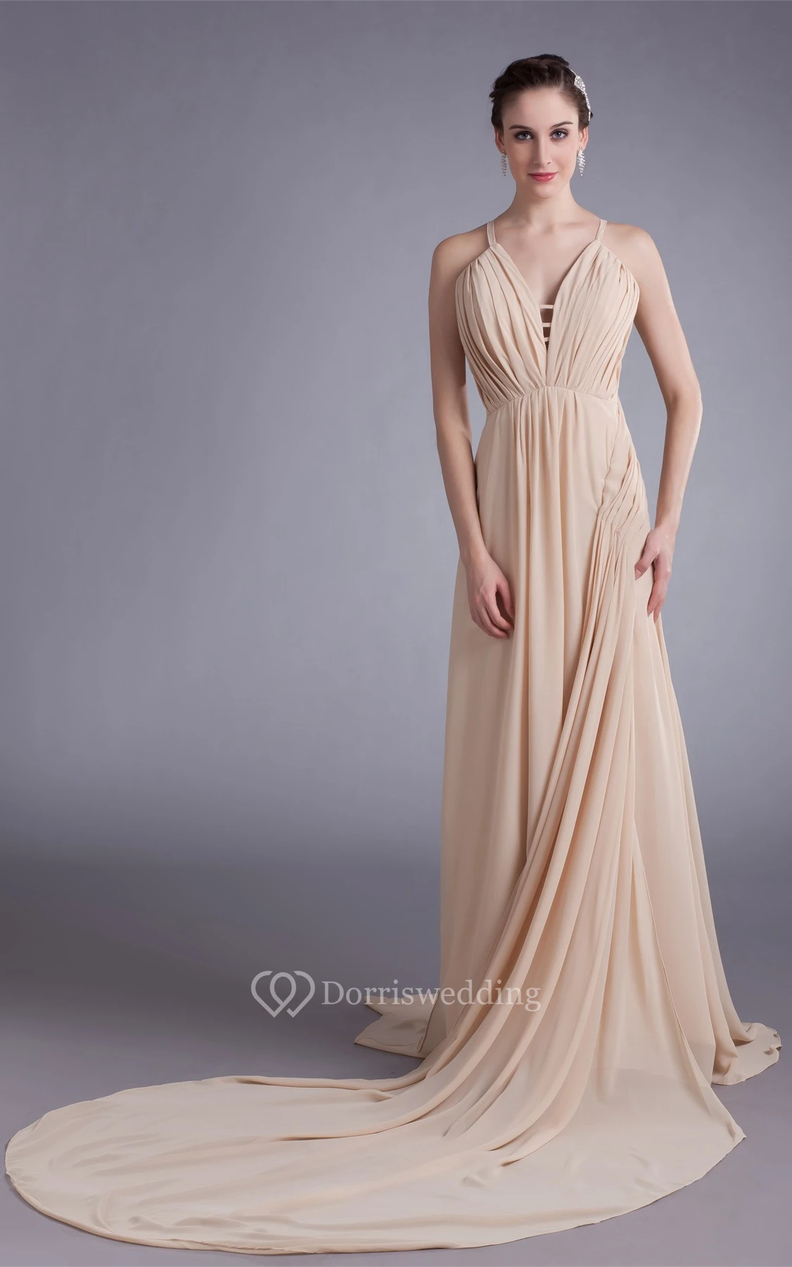 Unique Sleeveless a Line Strapped Chiffon Satin Special Occasion Dresses