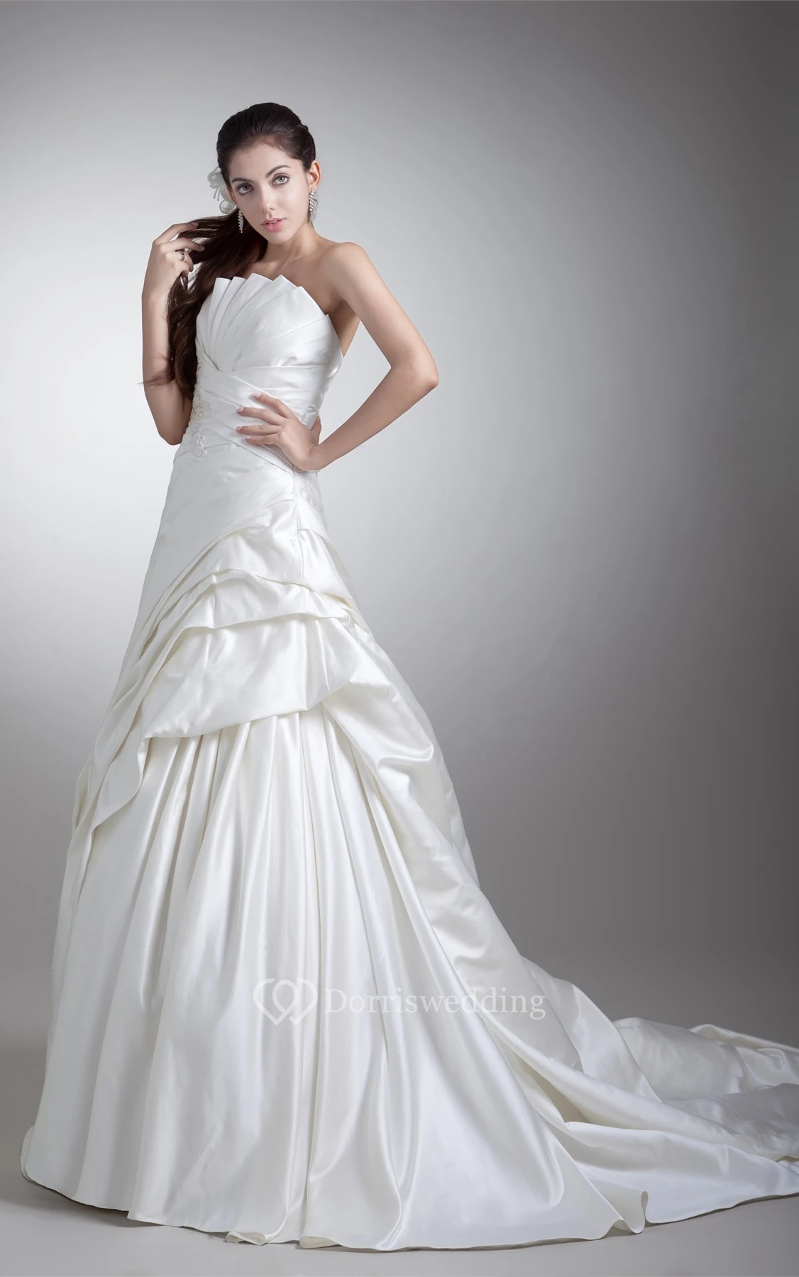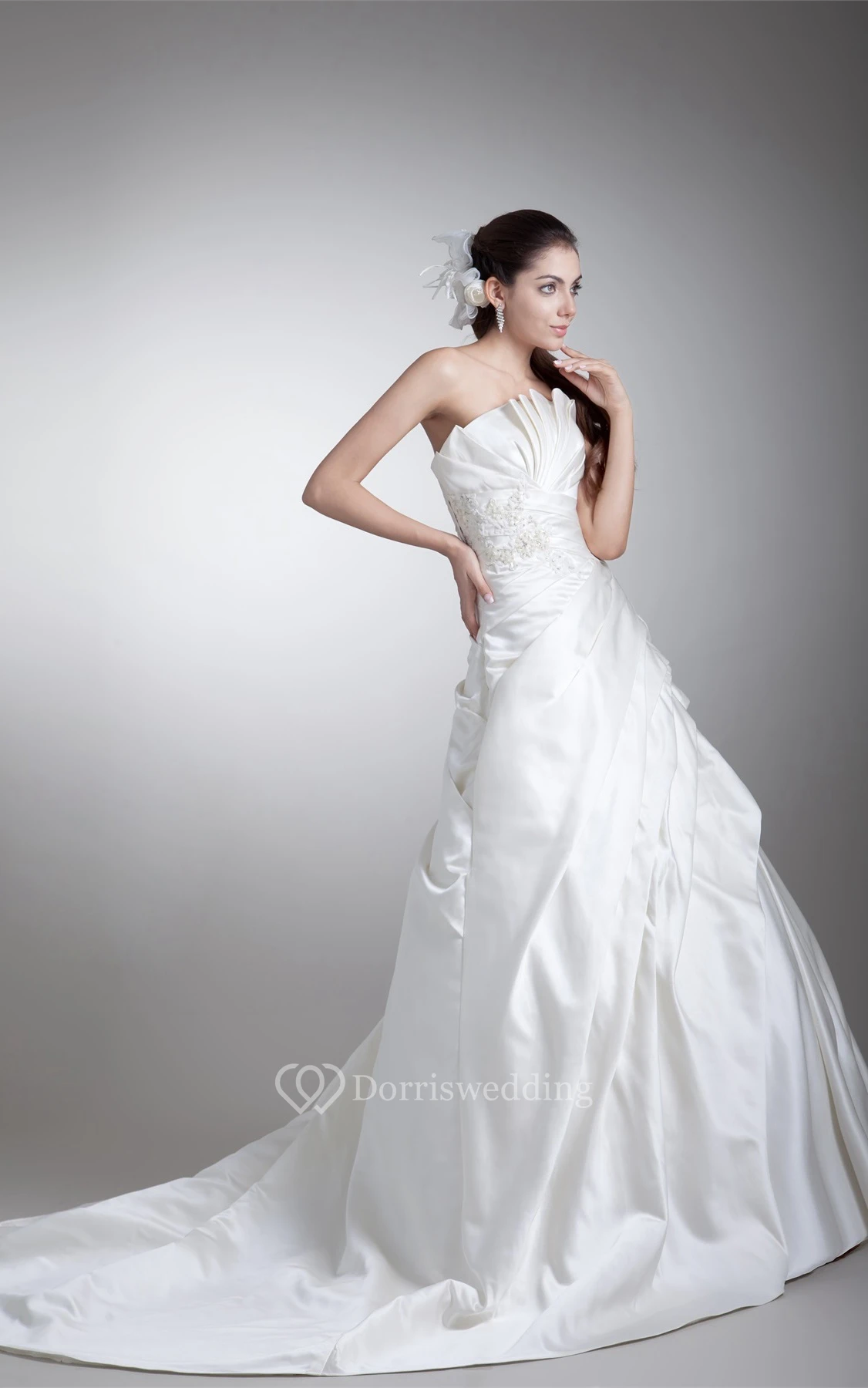 Unique Sleeveless Satin Strapless a Line Most Wedding Dresses