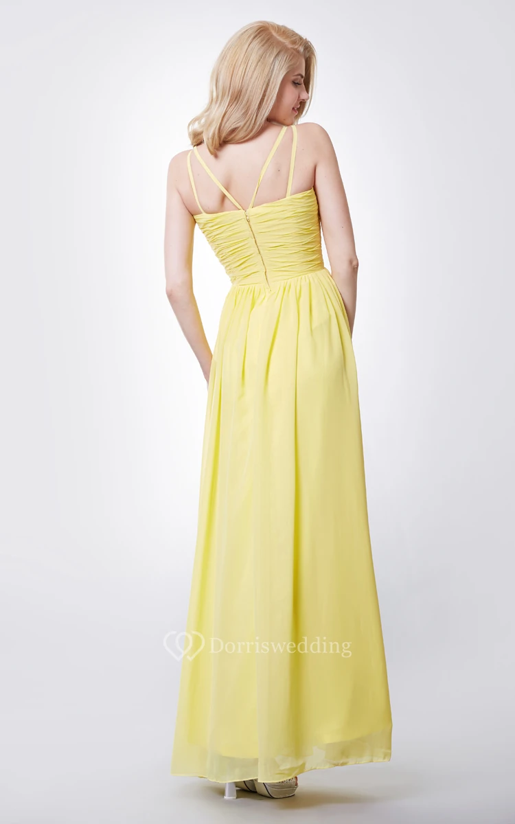 Unique Spaghetti Straps Sheath Chiffon Long Dress